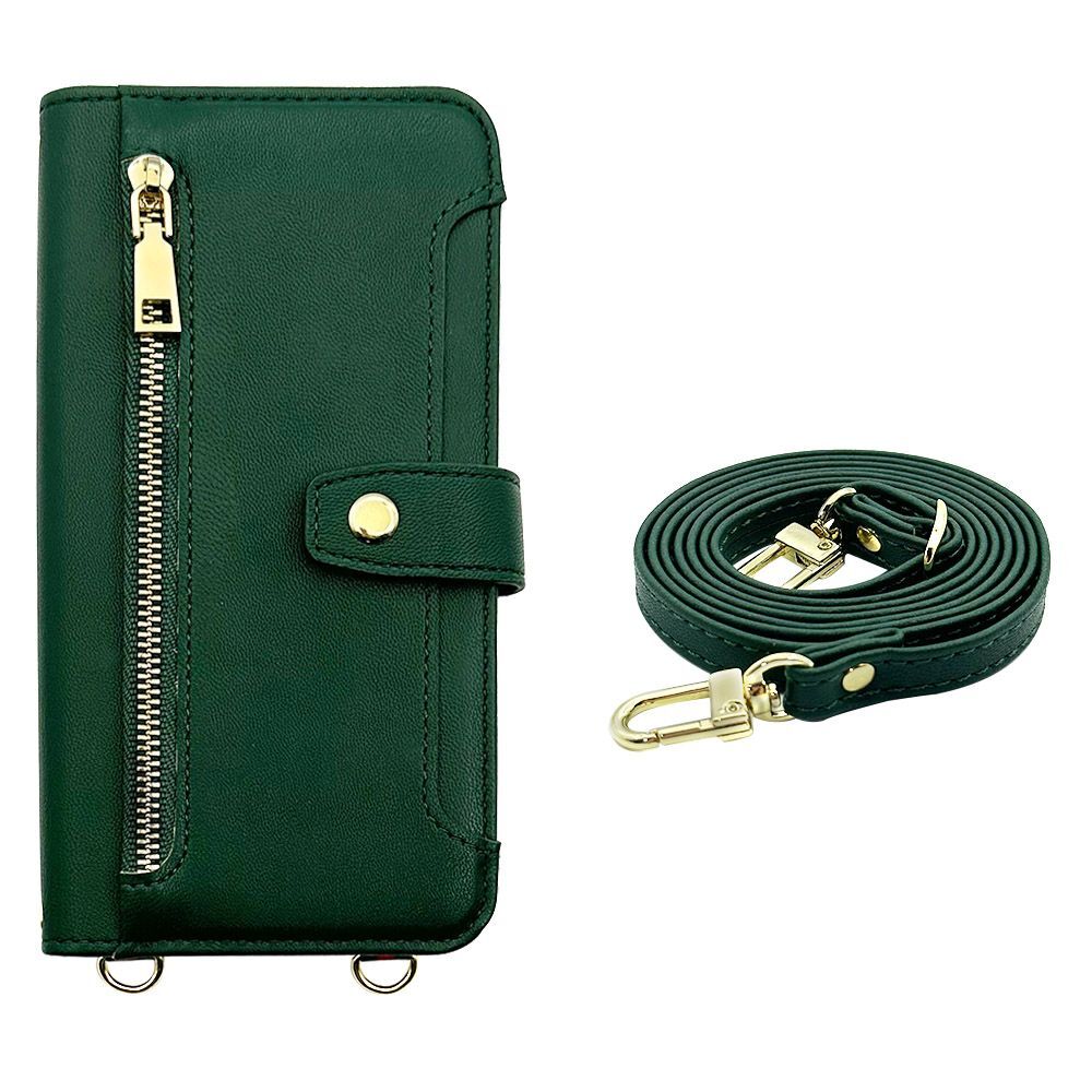 moto g24 ( XT2423-5 ) Motorola モトローラ スマホケース(手帳グリーン)斜めがけ スマホショルダー 手帳型 ストラップ付き くすみカラー