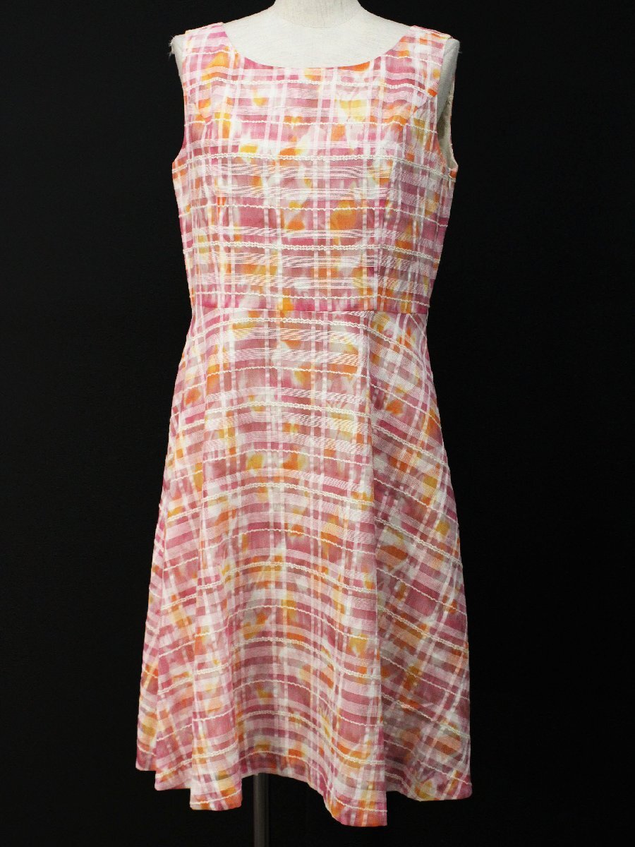 美品 BlueBell/ブルーベル リネンコットンチェック柄ノースリーブワンピース ピンク40 rj884