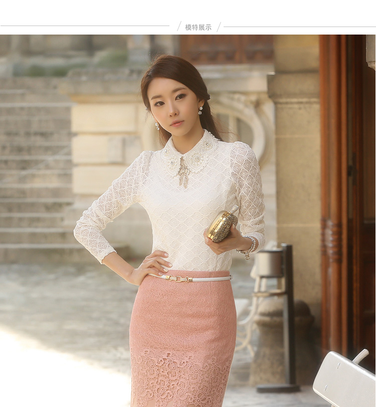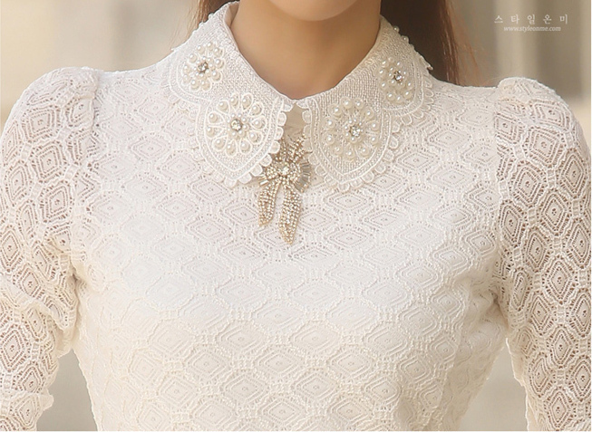 LDL277# 大きいサイズ ホワイト 総レース ブラウス エレガントな 長袖 レースブラウス XXL レース丸襟