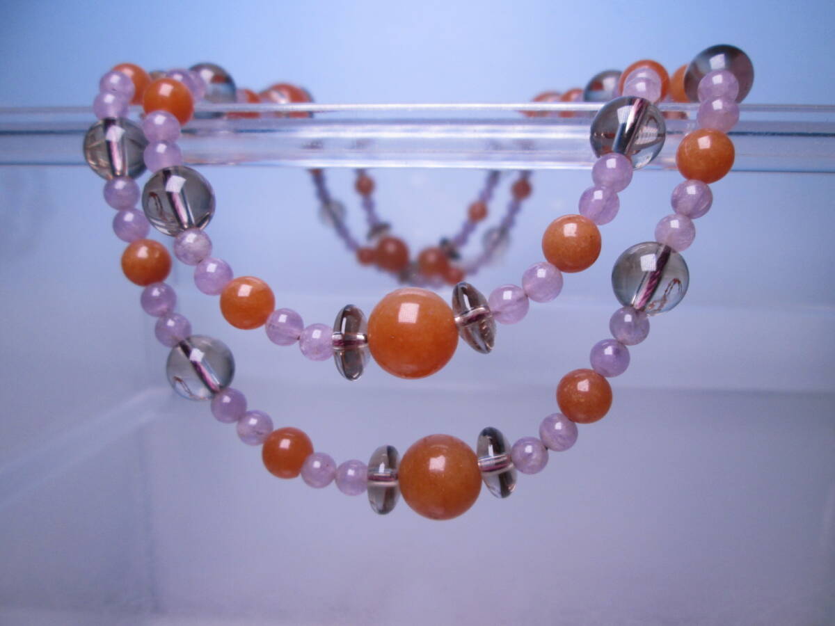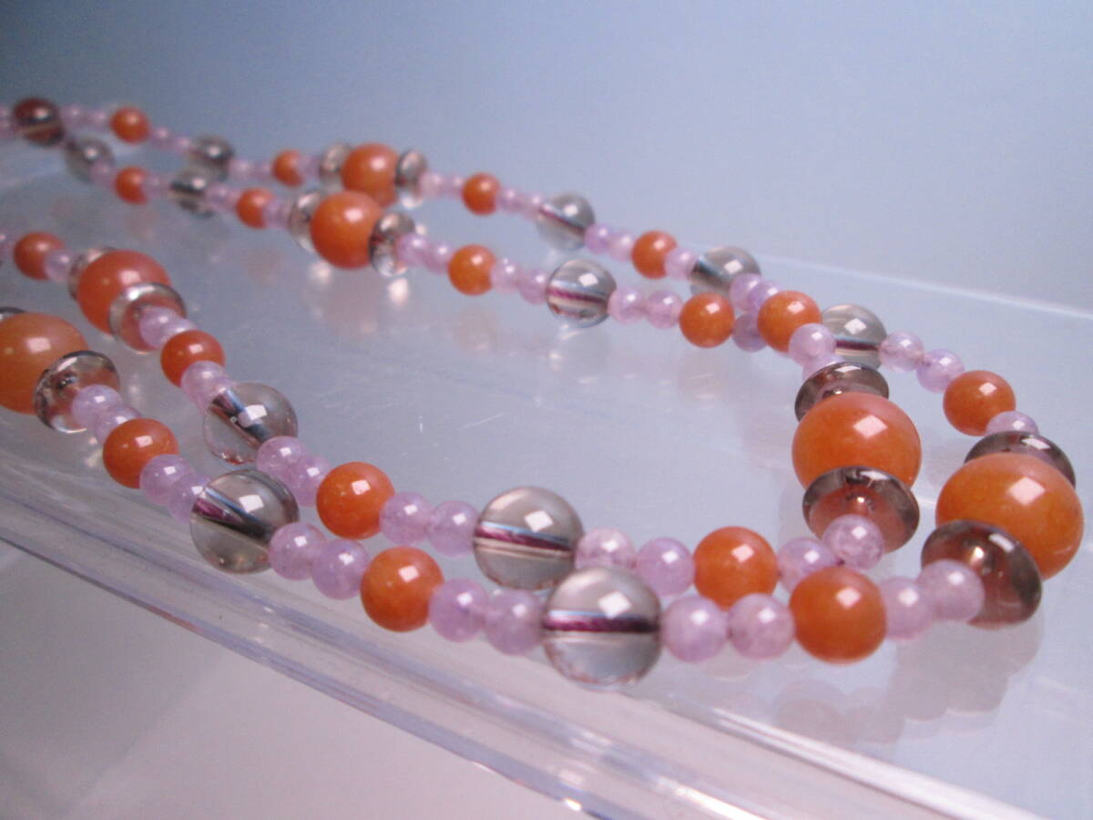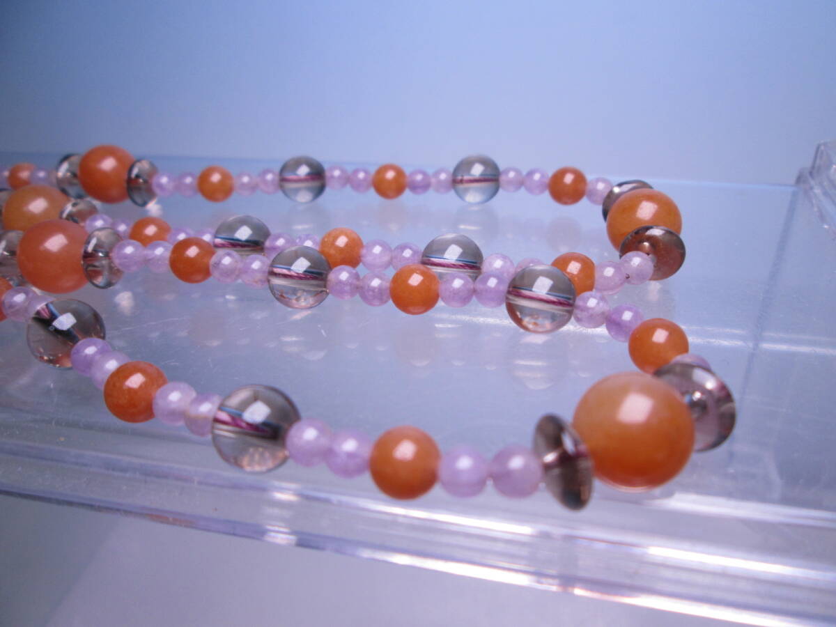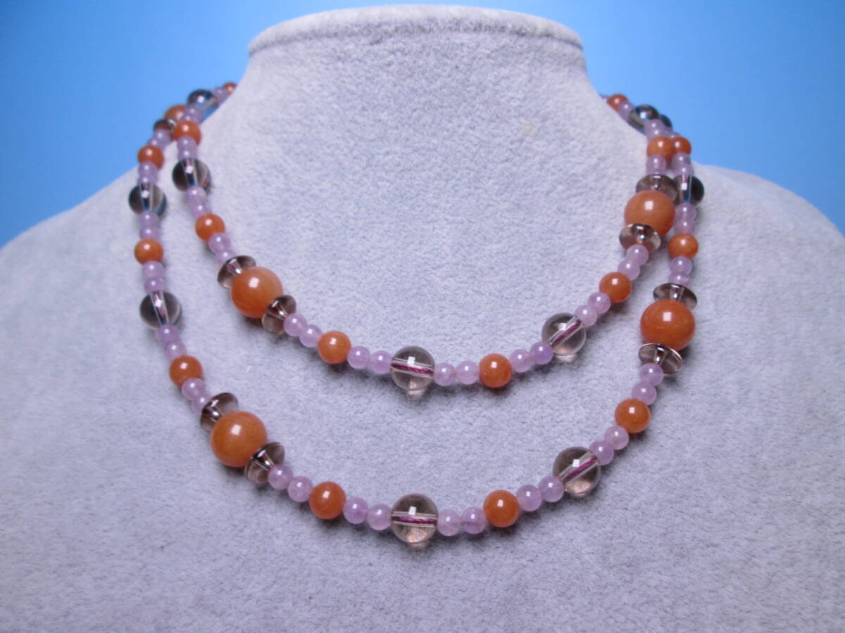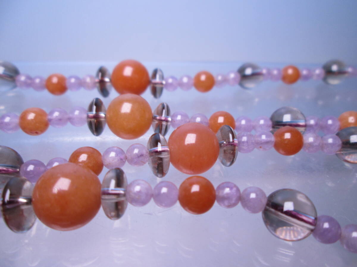☆オレンジ瑪瑙/スモーキークオーツ/アメジストのデザインロングネックレス