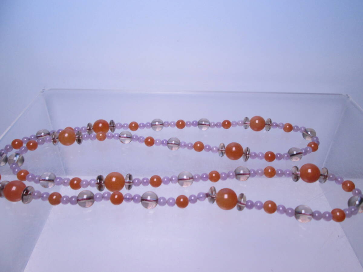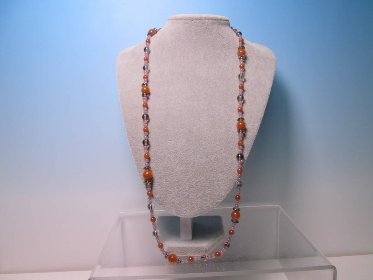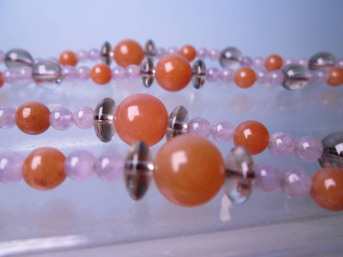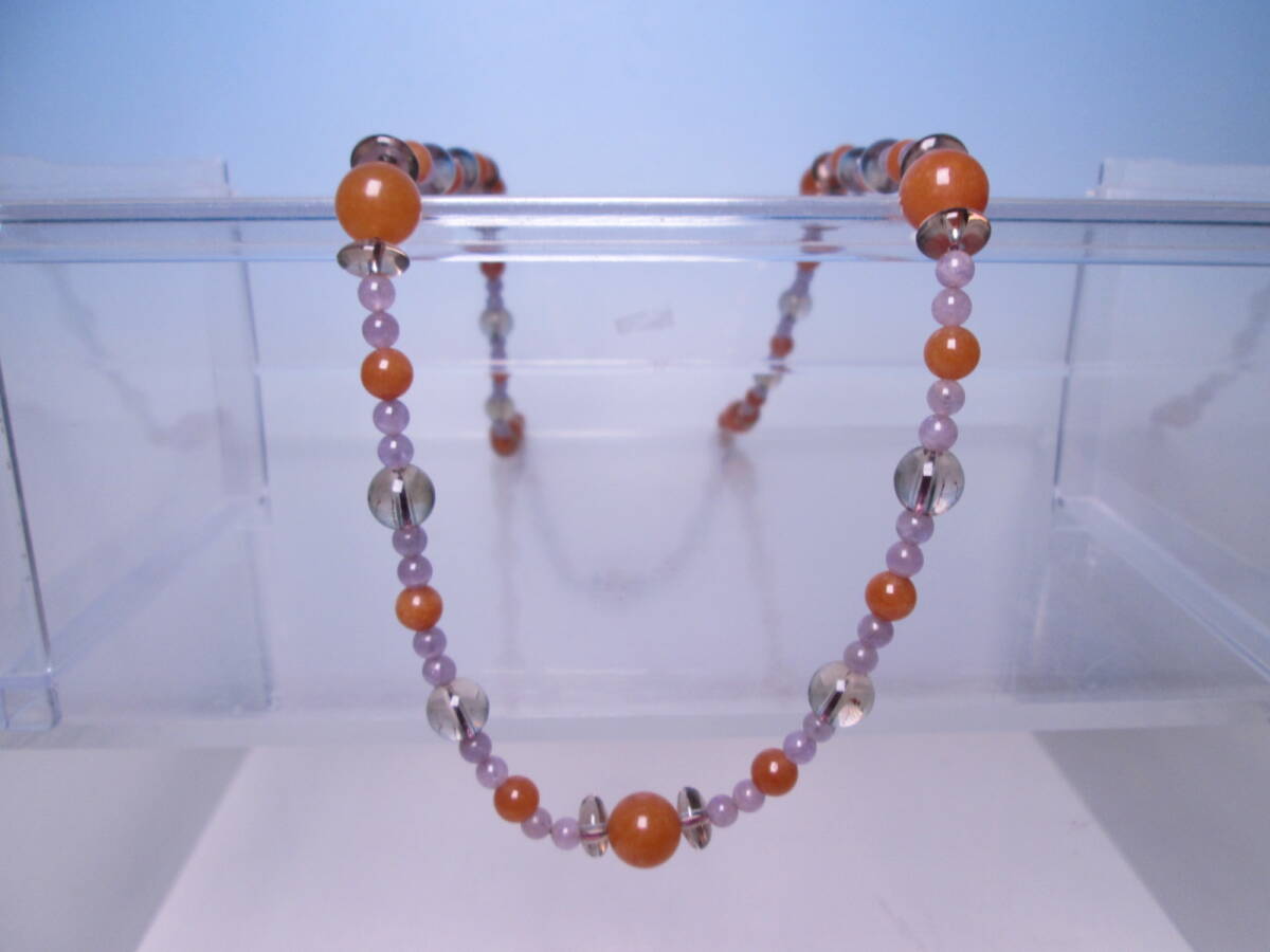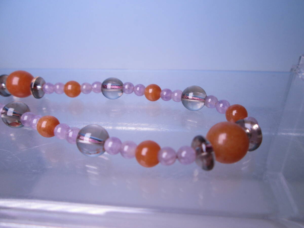 ☆オレンジ瑪瑙/スモーキークオーツ/アメジストのデザインロングネックレス