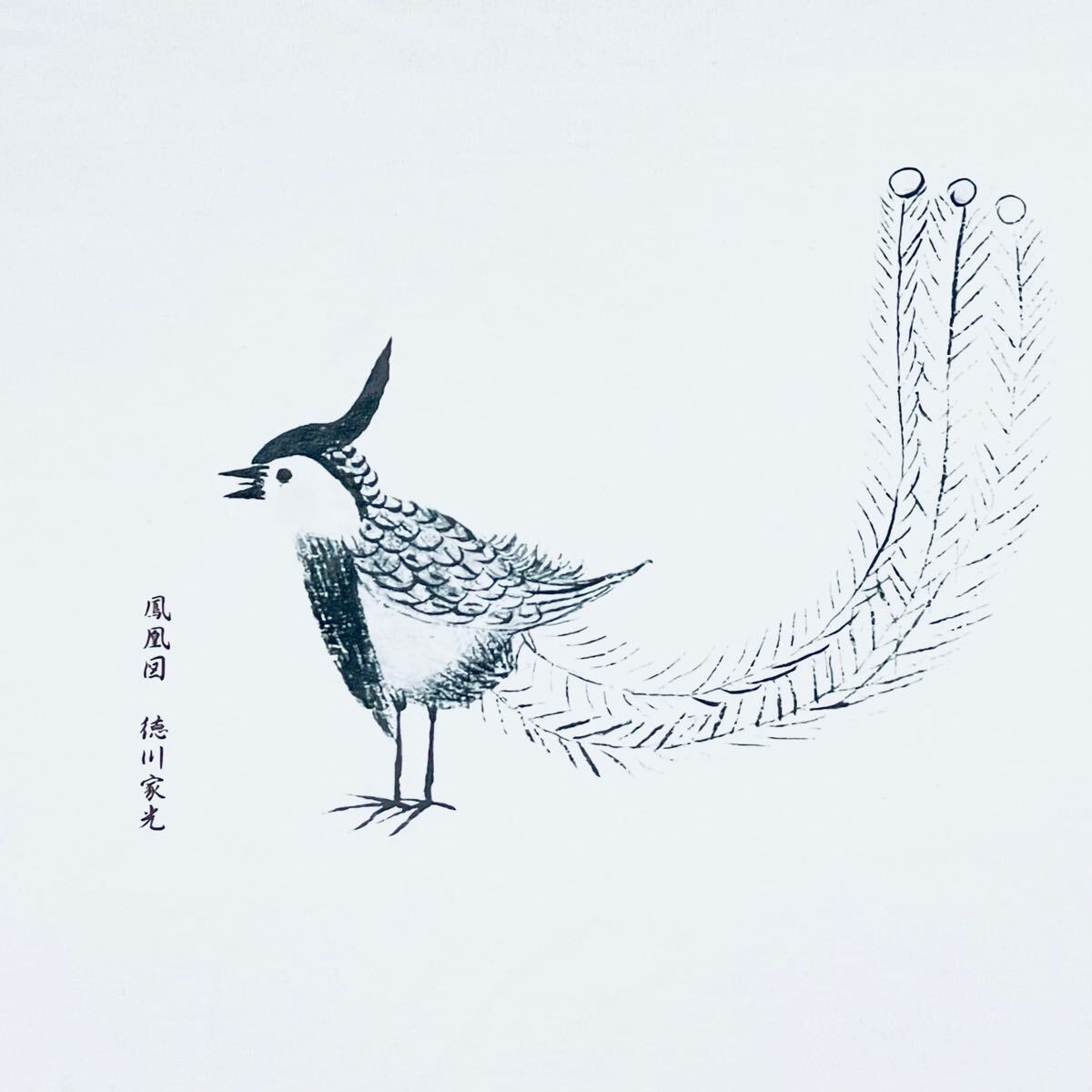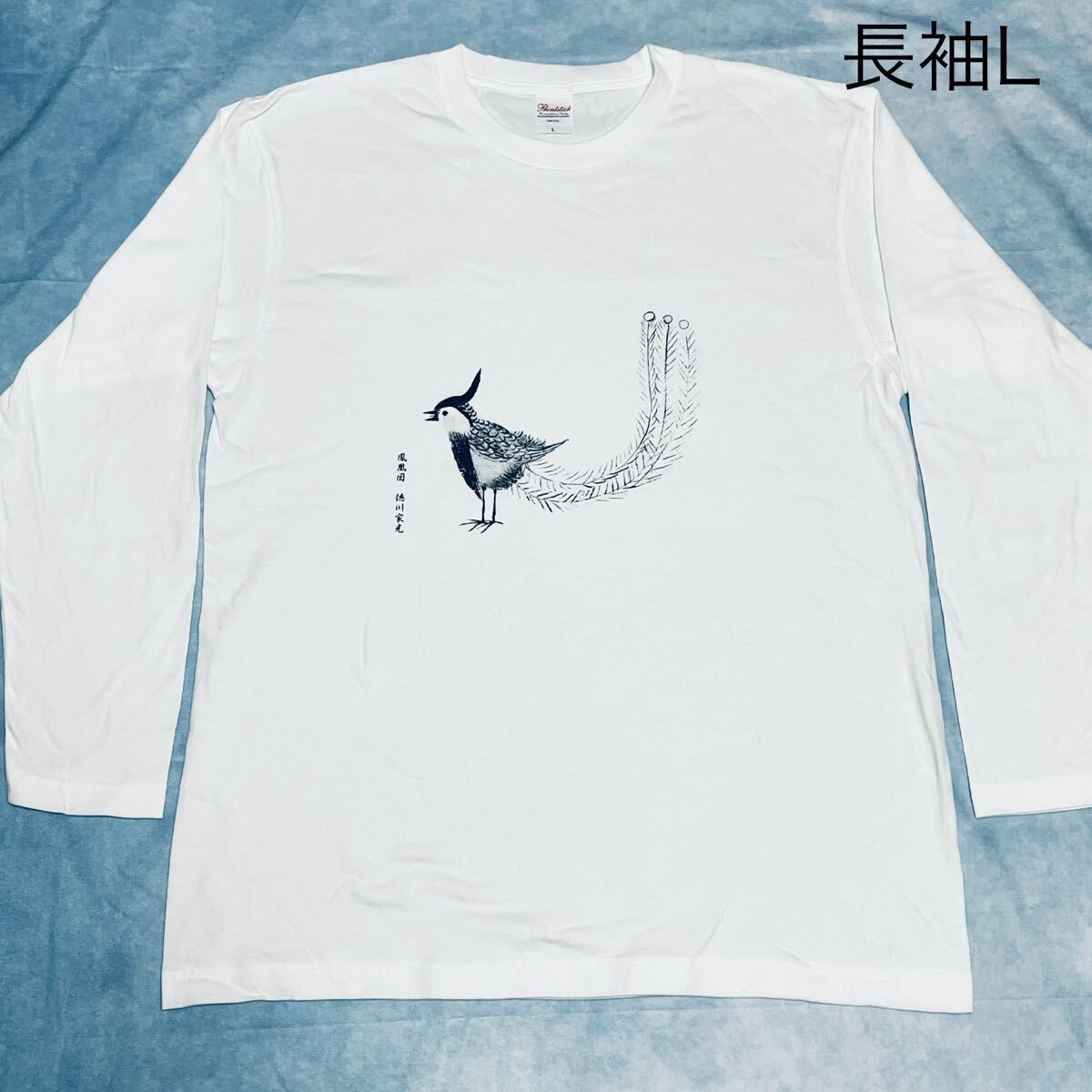 徳川家光の、鳳凰図 ぴよぴよ鳳凰 を美しくプリントした、ロンT、着心地が良く形崩れしにくい綿5.6オンスヘビーウェイト長袖TシャツLサイズ 白
