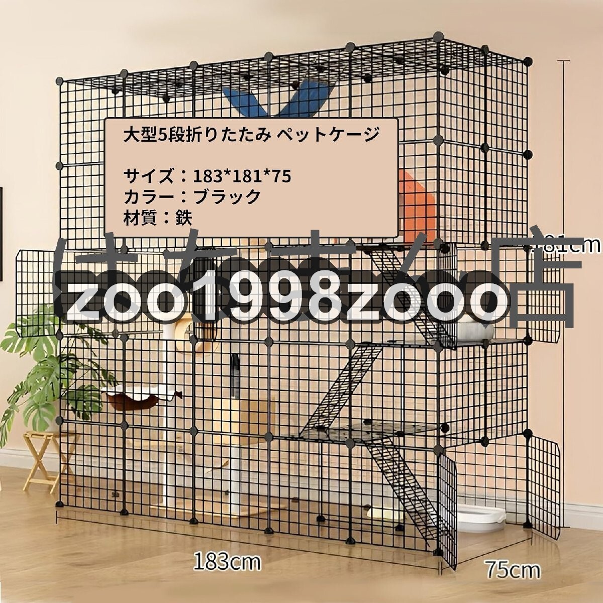 猫 折りたたみ ケージ 5段 大型折りたたみ キャットケージ 多頭飼い ペットDIYケージ組え自由 室内飼い 組立簡単 移動便利 キャットケージ