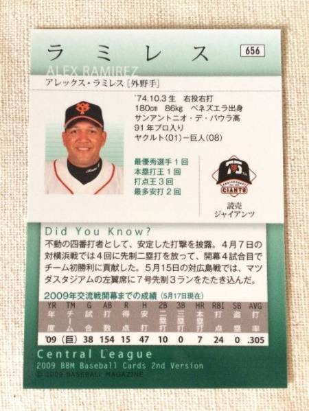 2009 BBM Baseball Cards 2nd Version #656 アレックス・ラミレス 読売ジャイアンツ/読売巨人軍 | |||