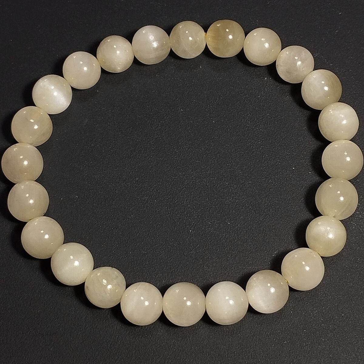 クンツァイトとミックスされてブレスレットになる事はよくありますが、ヒデナイトのみでのブレスレットは珍しいかと思います。