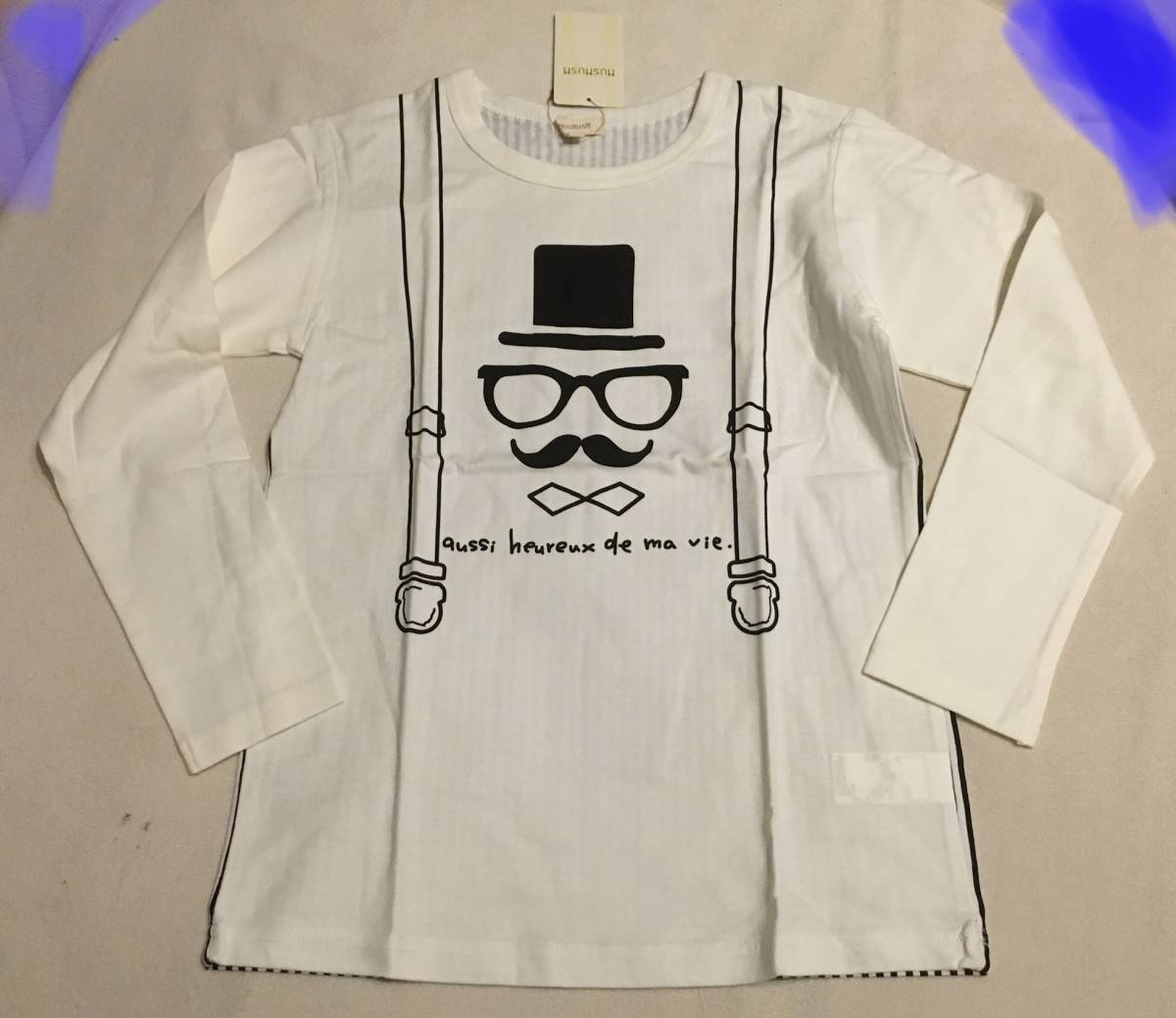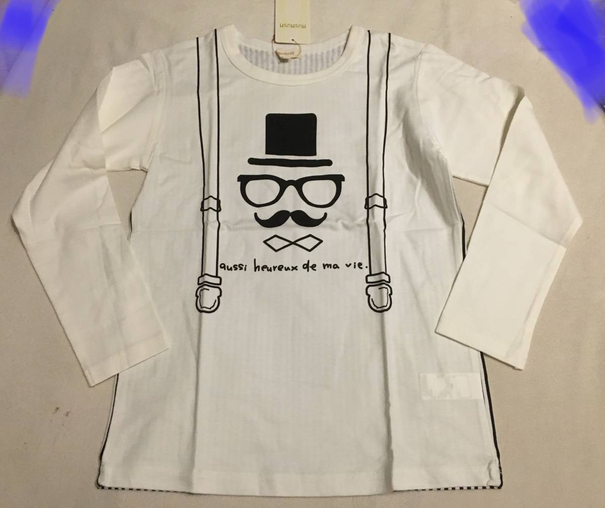新品 HusHusH ひげメガネプリントカットソー オフホワイト(003) 14(140cm) 定価1089円