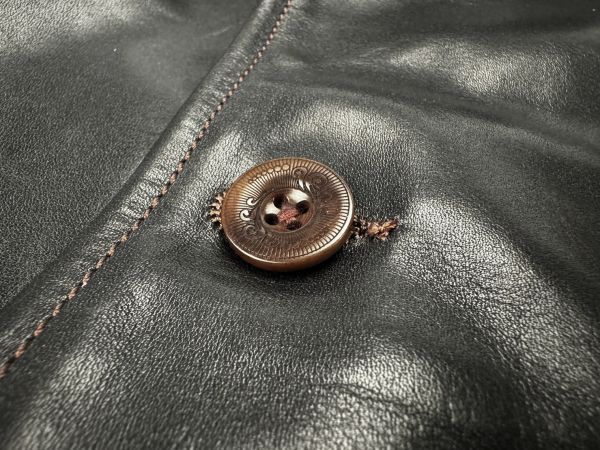 ボタンは削りだしの天然ナットボタンを採用、高級感ある色合いとデザインが施されています。