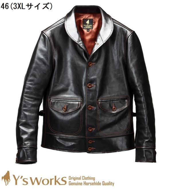 【残り1着 】限定セール! 35%OFF 日本製 Y’s Works ホースハイド 1900s コサックジャケット ブラック 46(3XL) MADE IN JAPAN 茶芯 馬革