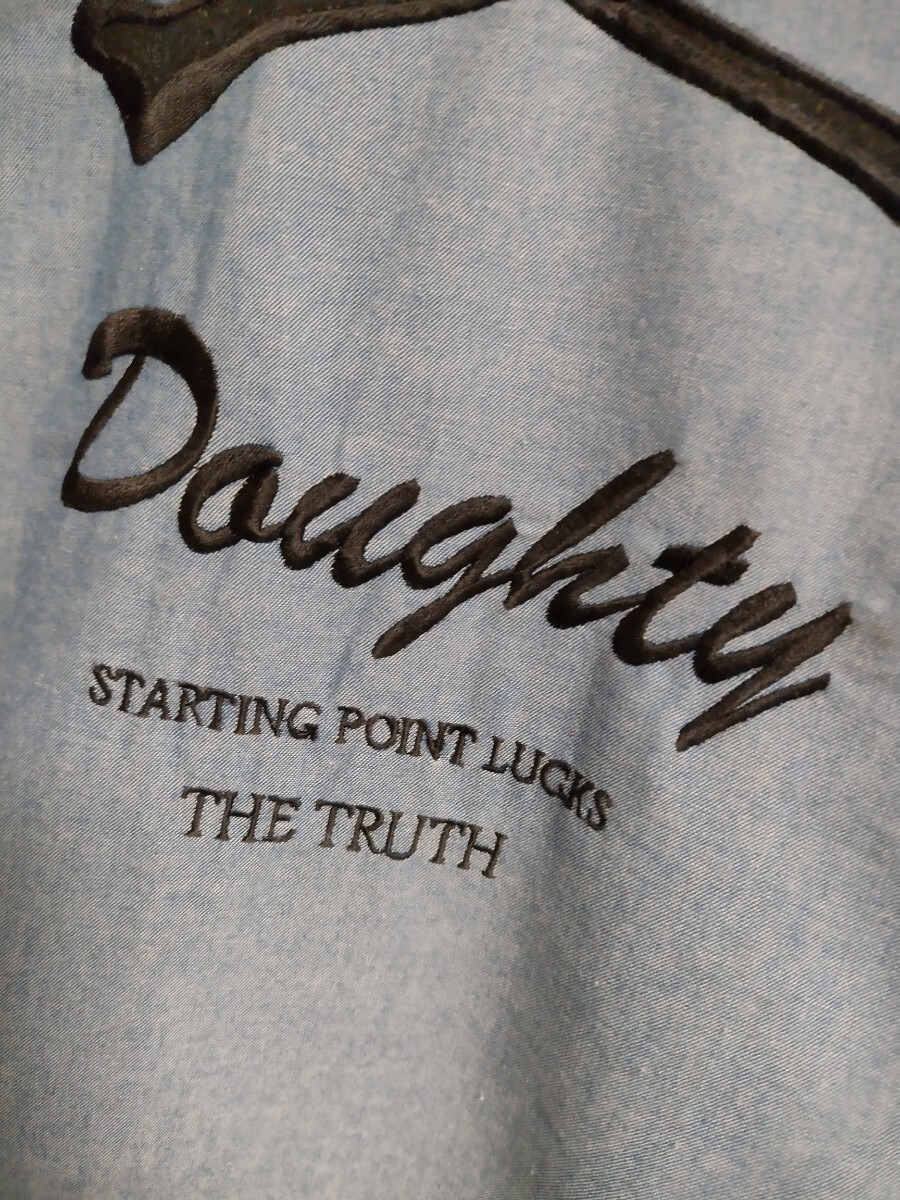 バックの特大刺繍が抜群の存在感を放つお洒落な一枚。