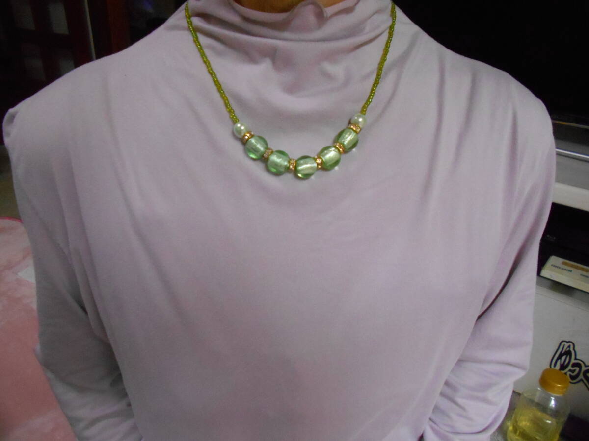 トンボ玉 ネックレス ロンデル入り マグネット です。