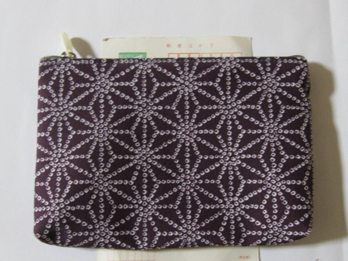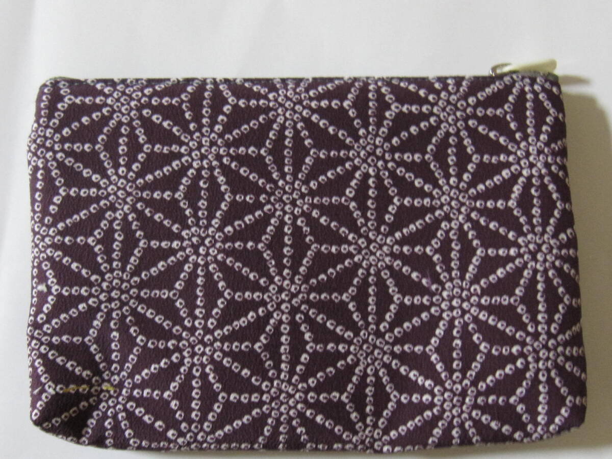 手作り 着物リメイク 大 ポーチ 濃い紫 麻の葉 鹿の子風 模様 小紋 古布 レトロ ハンドメイド 財布 小物 格安 冬 眼鏡 男女 兼用 可愛 幅広