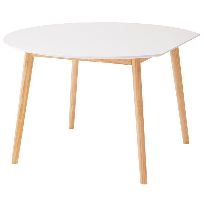 | キッチンカウンターや壁面に合わせて使用できる変形テーブル。 省スペースでも、ラウンドタイプのテーブルとして使用できます。 4人掛けとして使用にも十分な広さのテーブルです。 |
