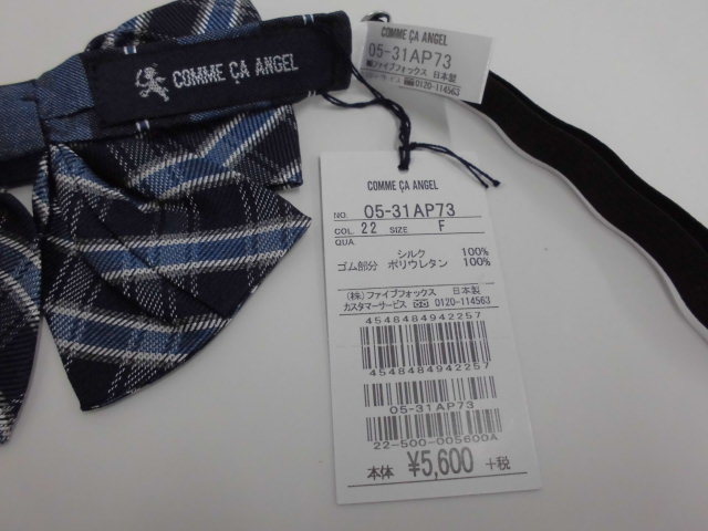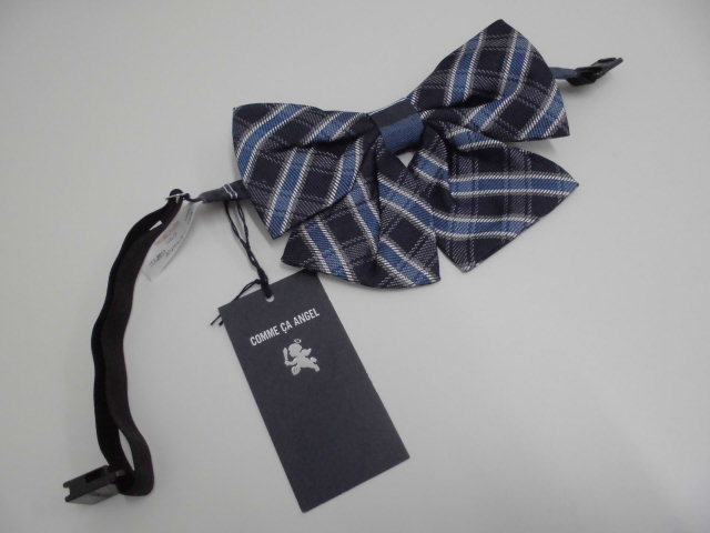 コムサの子供服の最高級ラインのエンジェルからシルク100%の蝶ネクタイ。定価4,104円。型番:05-31AJ68 COL22ブルー系