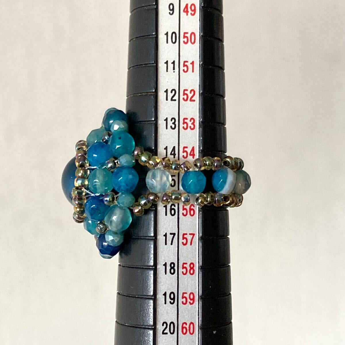 14-16号 ビーズ リング 指輪 ハンドメイド  パールビーズと瑪瑙ビーズの3重リング ブルーミックス です。