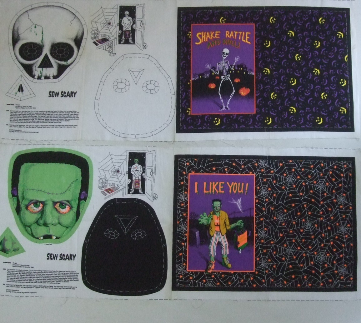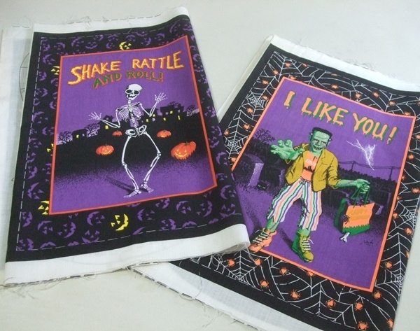 VINTAGE 80s Hallmark Cards Inc ハロウィン Halloween ファブリック・布地 未使用品 ビンテージ フランケンシュタイン 骸骨