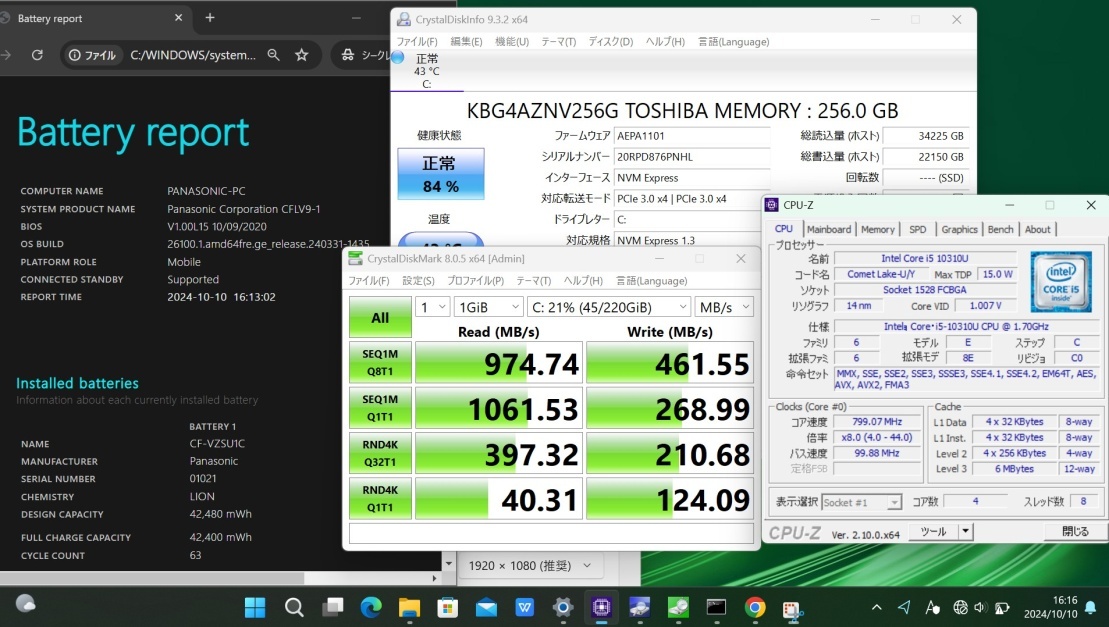| CPU: 超高速 Intel 超高性能 第10世代Core i5-10310u 1.7Ghz、 4コア8スレッド (ターボ・ブースト利用時の最大周波数 4.4GHz) |