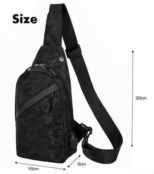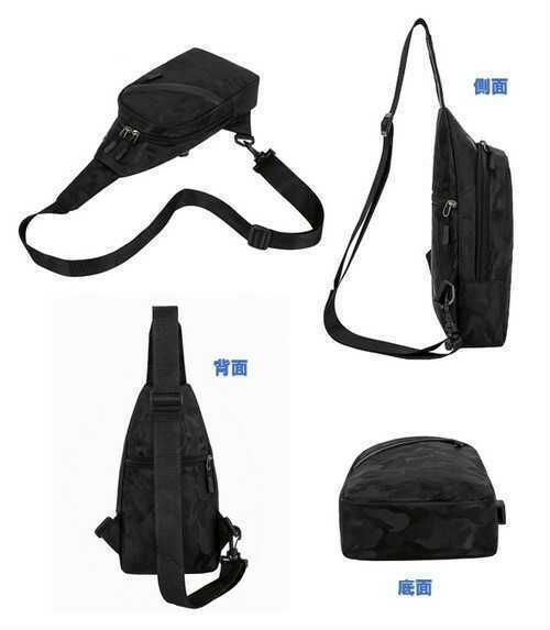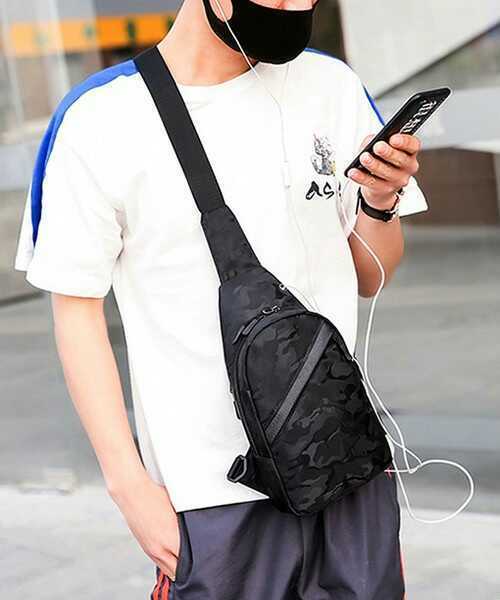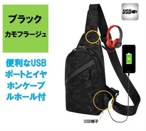 YWQ312【ブラック迷彩】 ボディバッグ メンズ レディース  ワンショルダー 斜め掛け 軽量 USBポート イヤホンホール
