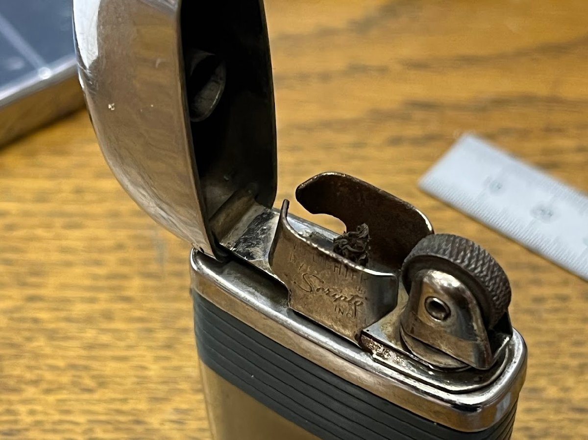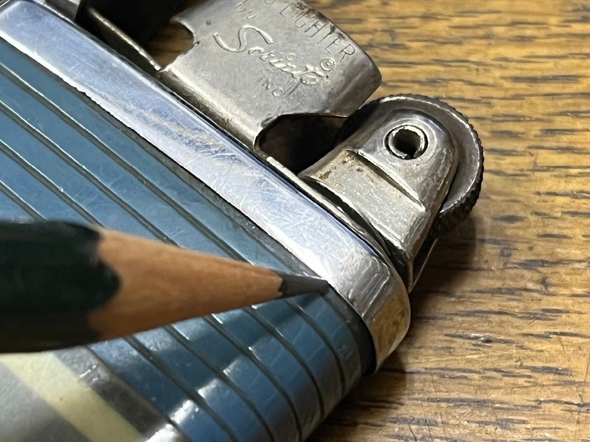 ネイビーのジッポーはよく見かけますがスクリプトのVUライターはかなり希少かと思います。