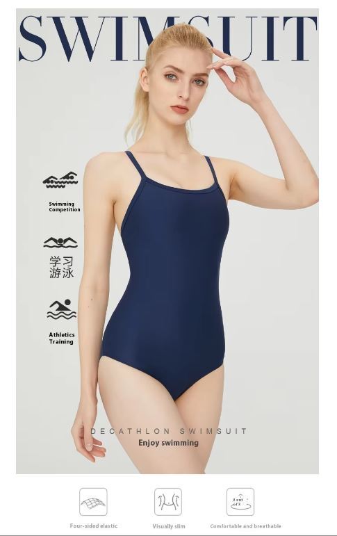 【Dark Blue サイズ:M・L・XL・2XL・3XL】女性用ブラパッド付きワンピーストライアングル水着、プロモデル、レーシング水着