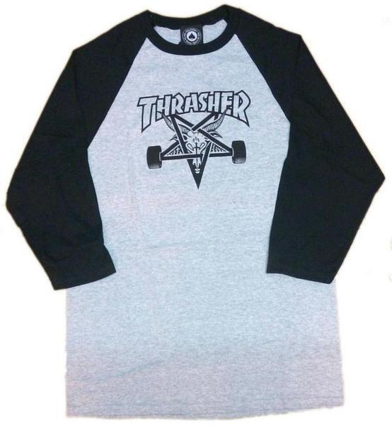 THRASHER Skate Goat Raglan 正規品/新品 For many, the right sleeve length is Raglan all the way. Heavyweight,100% pre-shrunk cotton raglan jersey features the classic Skate Goat logo. おなじみスケートボードマガジンの大御所,THRASHER誌の定番 Skate Goat ベースボールTeシャツです。 ステッカー・パッチ~バックル等の様々なアイテムに使用される、代表的なICONのプリント! 流行に関係なく末永く着ていただける定番デザイン! 新品・US正規品 Sサイズ 細見の170cm前後の方に良いかと思われます。身幅46cm , 着丈73cm 袖丈(脇下~袖先)33cm メール便送料\250 ACE CAFE LONDON、LUCKY13、THRASHER、Sailor Jerry等~アメキャラ・企業ロゴ等ライセンスTシャツ、RATFINK関連品、バンドTシャツ等取り扱っております。 ** 他にも色々出品中です。 CWKTW CWLPPC IWTS IWLT | |||||||