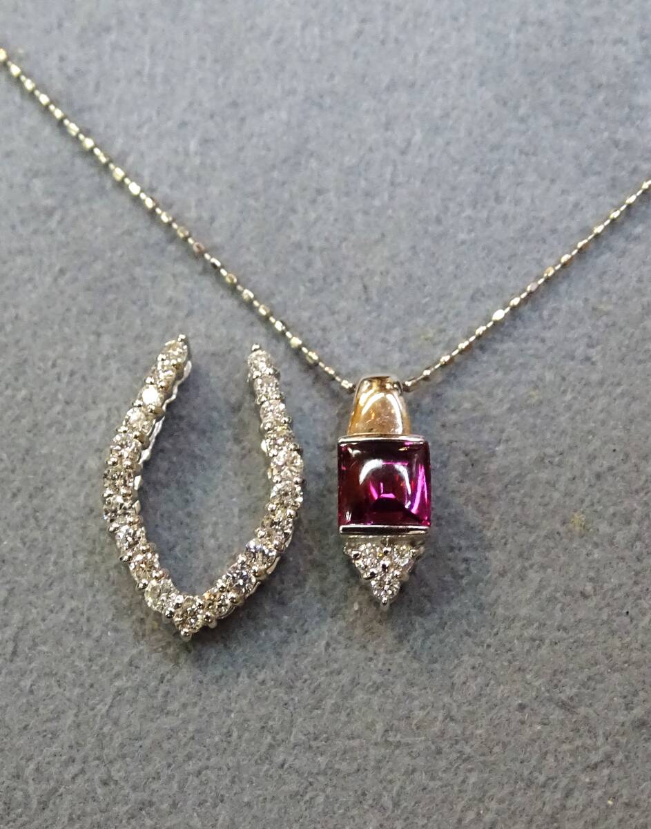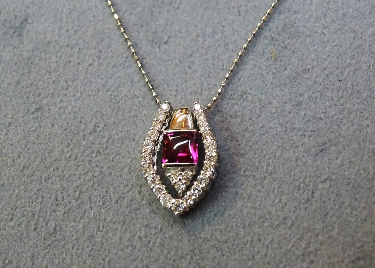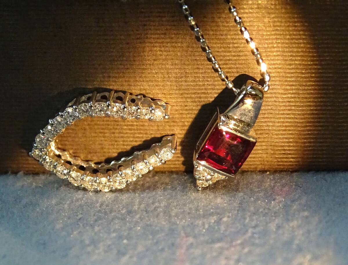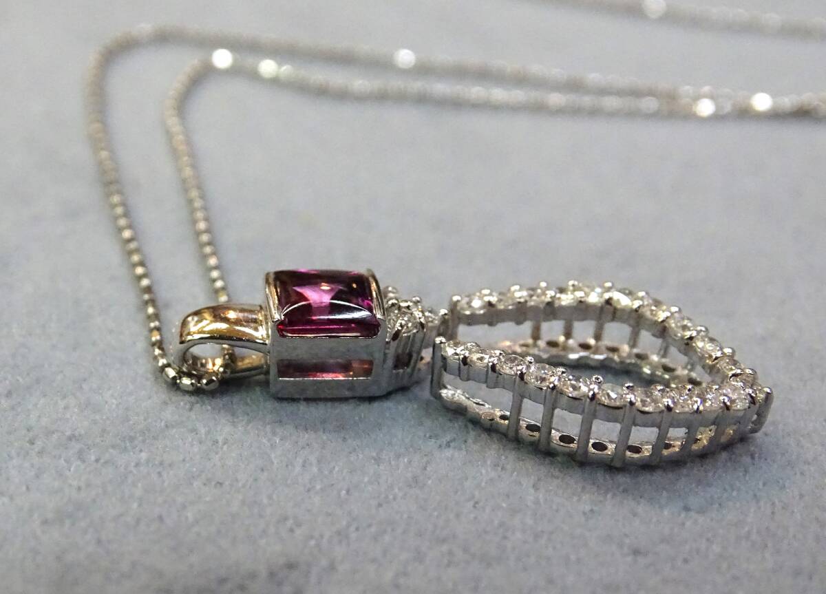 ♪【色・テリ・輝き・カット】等、すべてに【トップグレード】のガーネットの中でもピンクカラーが入った、特に綺麗な希少石!【天然:ロードライト・ガーネット:0.43c】を【K18WG】製の枠に、留めた、上品で個性的な【ペンダント】!また、【K18WG・天然ダイヤモンド】製の枠と、セットでも、単独でも使える【2Way】タイプですので、色々と変化を楽しめます! この機会に、ご自分へのご褒美に、大切な方へのプレゼントにもどうぞ! 年齢を問わず、どなたにもお似合いになります! ♪【ネックレス】は【Pt850】製【カットボール・ネックレス:45cmフリーサイズ・0.80㎜巾・45cmまで自由に長さを 調節出来るもの】が付いていますので、どんなお洋服にも合わせられます! *ネックレスは、ペンダントから外せますので、他のペンダントにも使えて便利です! 【総重量=4.1g(ペンダント=2.5g・ネックレス=1.6g)】(バチカン穴=3.5×1.8mm径) 【ペンダント=バチカンを含む縦巾=17.2mm・最大横巾=11.1mm・最大厚=5.4mm】 【ネックレス=Pt850・カットボール・45cmフリーサイズ・0.80mm巾】 *新品・未使用・本物。*鑑別書付き。 【送料・消費税・システム料・鑑別書・ケース、すべて無料!!】 ●注意●この商品は、他のサイトでも出品中ですので、万が一、そちらで落札された場合は、お譲り出来ないことをご了承下さ い。 **発送方法は、ヤマト便(送料:無料)です。指定配達日と時間指定出来ます。 **【商品代金について】 消費税・システム使用料・落札手数料・送料すべて込みです。 【お届けについて】 すべての商品の送料込みの値段です。 (1万円以上の商品はヤマト便・手渡し。1万円未満は配達記録郵便です。) 【ご返品について】 万が一、お届け商品が偽物・欠陥品・不良品のみ商品のお届け日から3日以内 の場合は、まず電話かメールでご連絡頂いた上で返品をお受けします。 ご落札者様のご都合(イメージが違う・入札商品、入札価格の入れ間違い)での ご返品の場合は、落札手数料及びシステム使用料・送料をご負担頂きます。 また、事前にご連絡の無い場合・4日以上経過しての返品・使用後の返品・ サイズ直し後のご返品は、一切お受け出来ませんのでご理解下さい。 【キャンセルの場合】 ご落札後のキャンセルは、ヤフー評価システムにより自動的に【悪い評価】が ご落札者に付いてしまいます。ご理解の上のご入札・ご落札をお願いします。