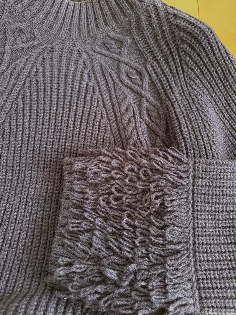 ○袖がフリンジ?のようなおしゃれなデザインになっています。お色が紺なので使いやすいと思います。