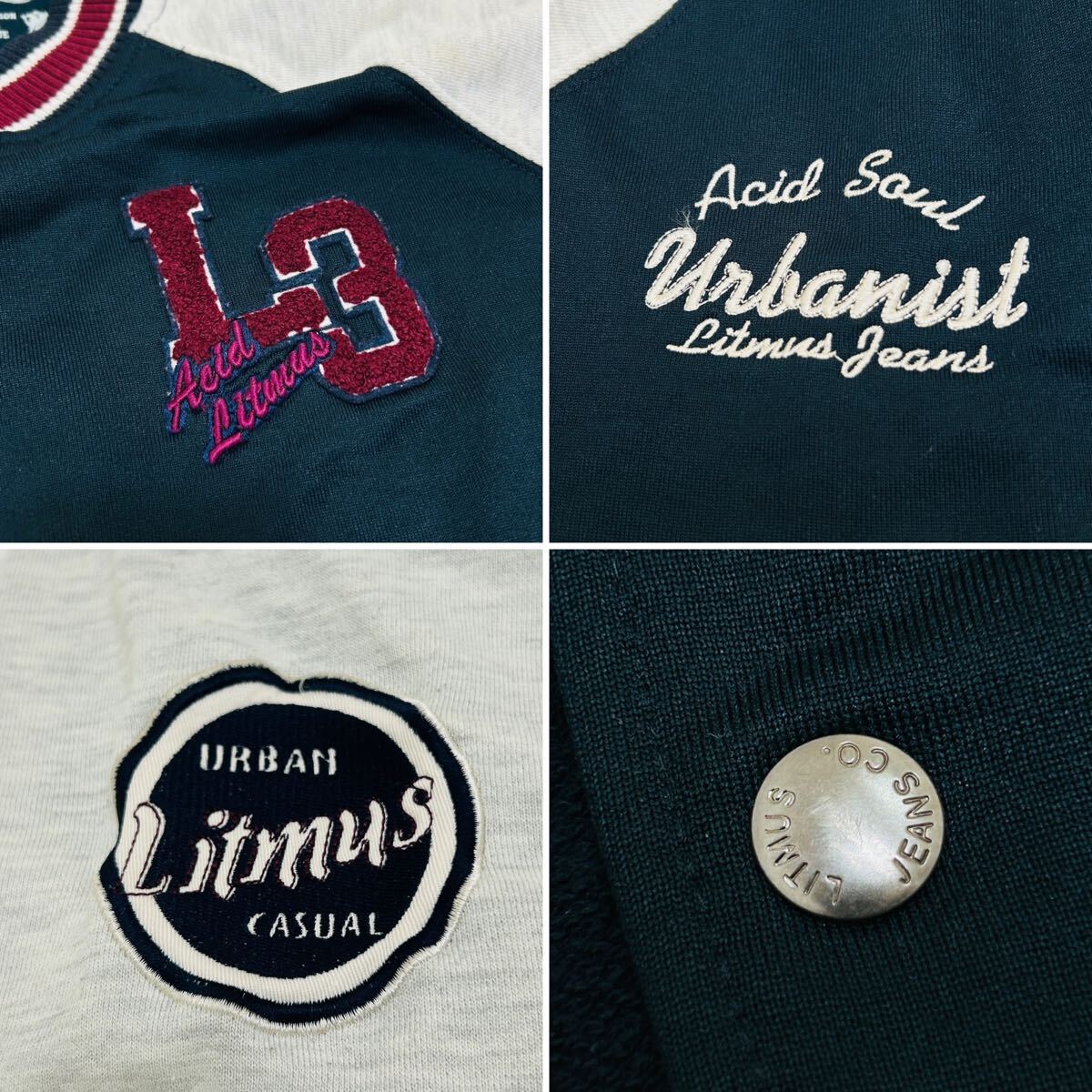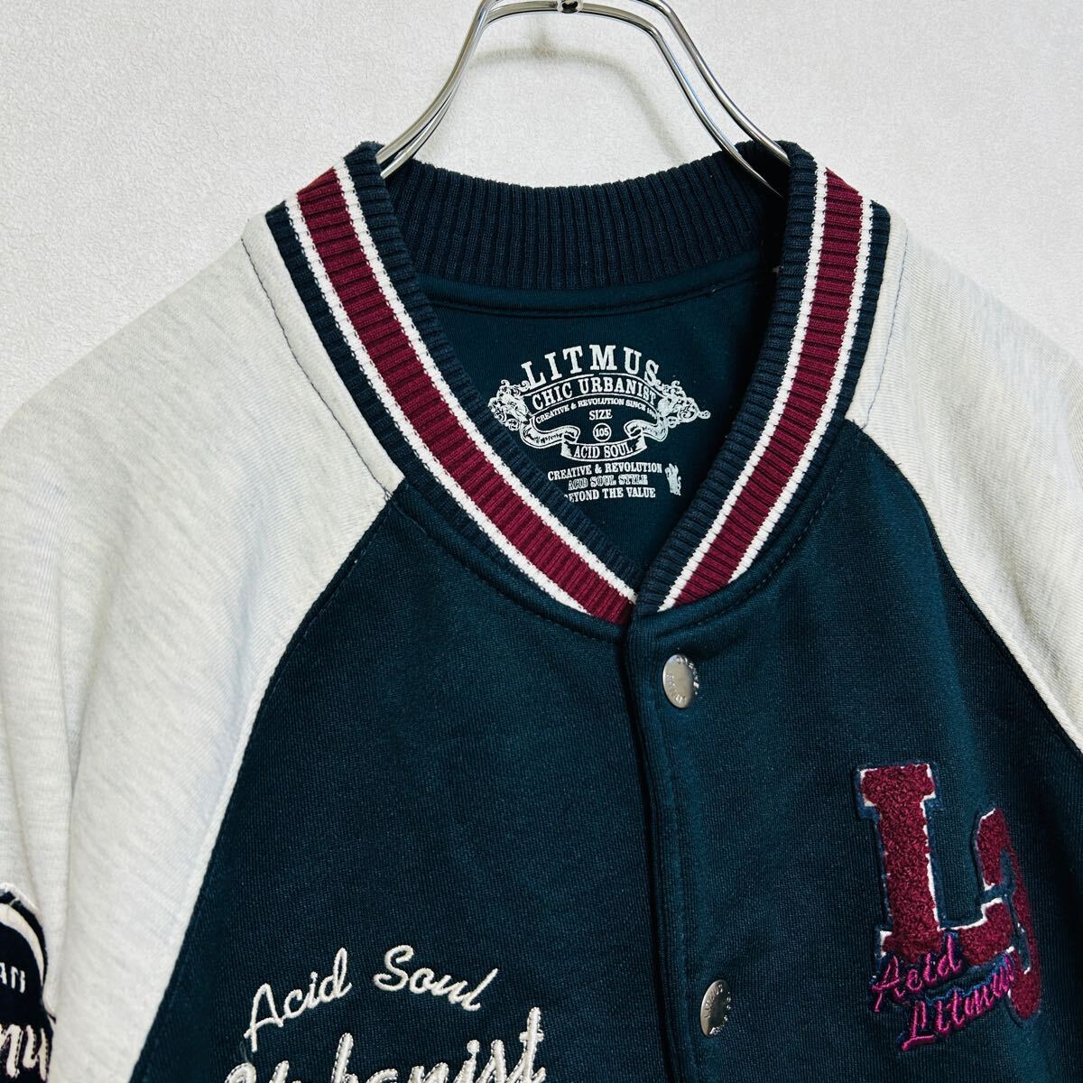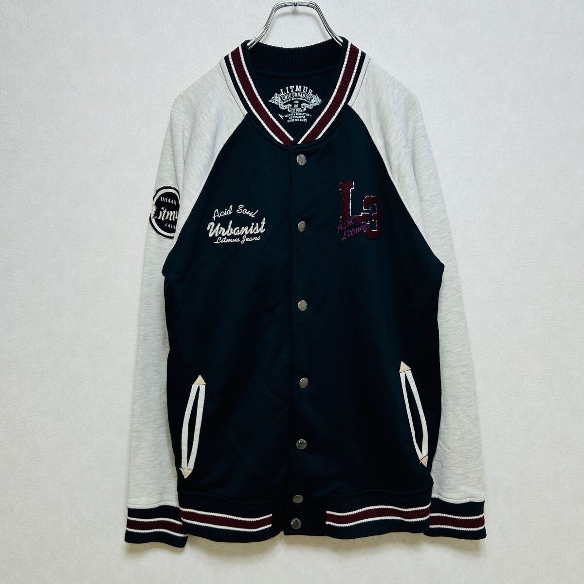 YT2301 LITMUS JEANS リトマスジーンズ スタジャン Lサイズ ロゴワッペン 刺繍 スナップボタン ネイビー ブルゾン アメカジ 古着