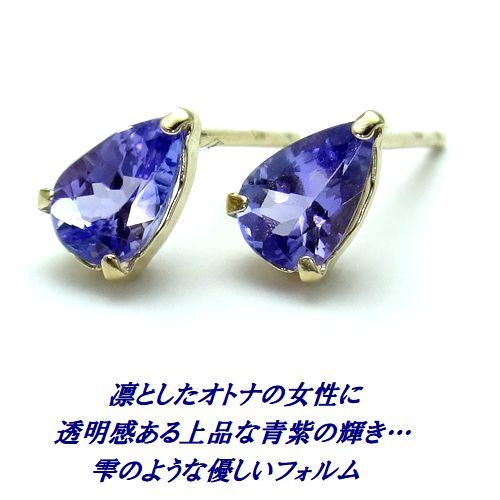 K10 タンザナイト ペアシェイプ ピアス ジュエリー 10金 WG YG 選べるゴールド ツユ 天然石 12月誕生石 箱付き