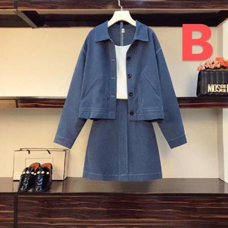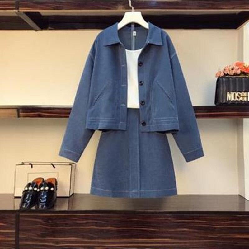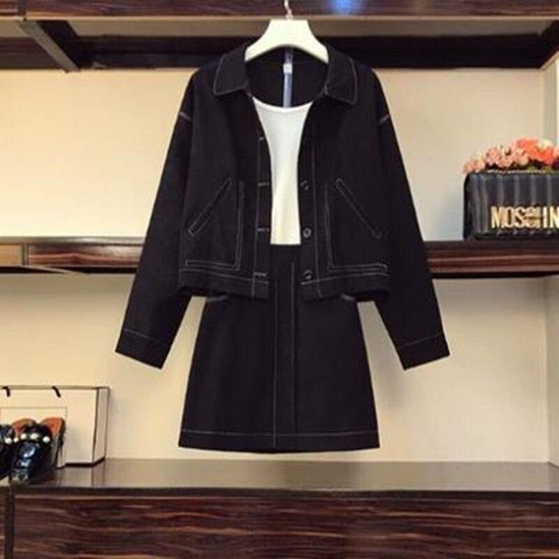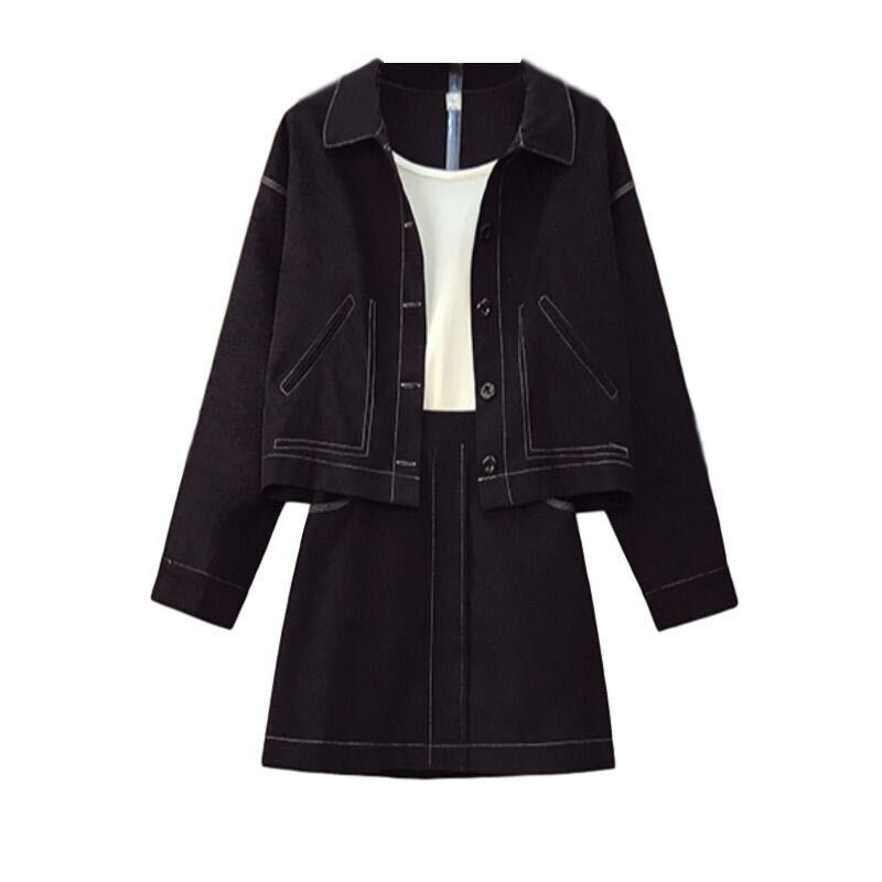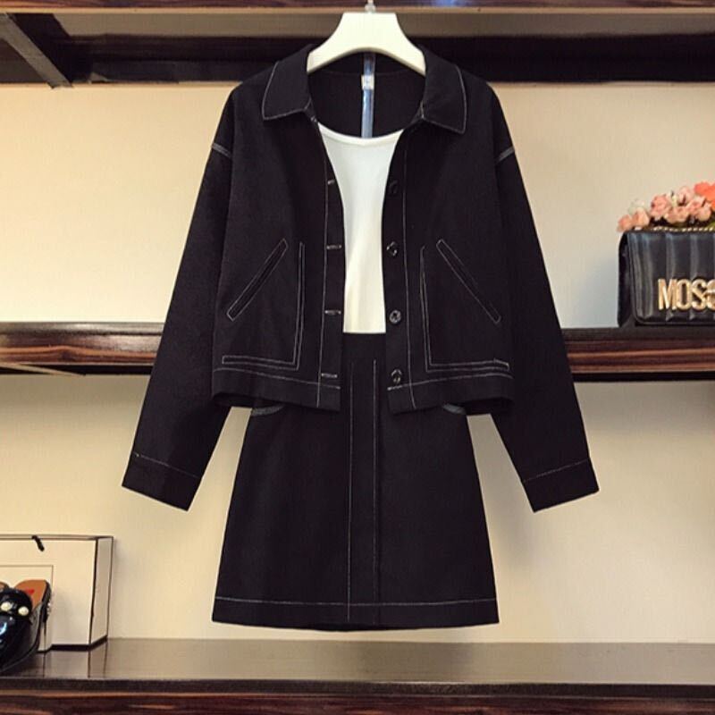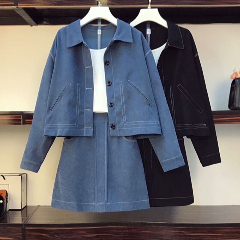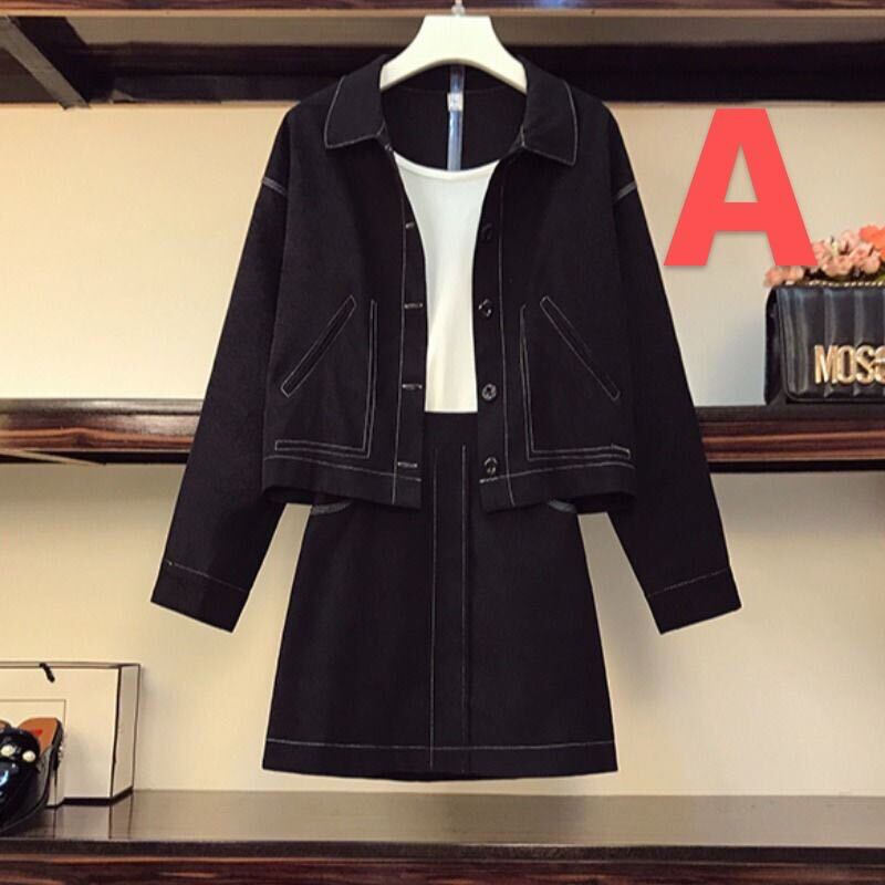 レディース セットアップ アウター+スカート 2点セット ミニスカート 春秋 長袖 ゆったり かわいい 大きいサイズ 体型カバー 無地 シンプル 通勤 大人 かわいい LSFA055(2色M-4XL)