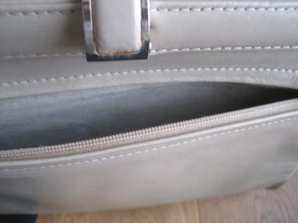 口が大きく開くタイプです。中と外にチャック式(YKKファスナー)のポケットあります。