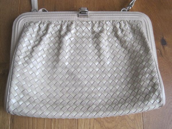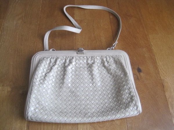送料無料 薄型ショルダーバッグ 編み込み がま口 ACT hand bags YKK 美品