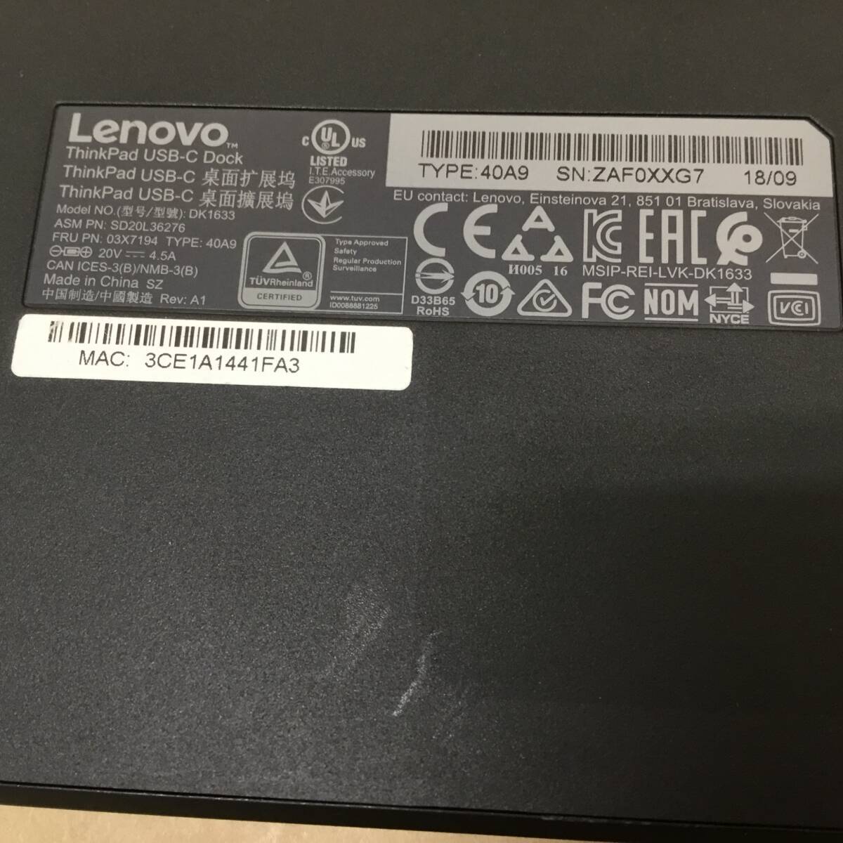 | 動作保証30日間 【2409107823】 Lenovo ThinkPad USB-C Dock 40A9 DK1633 USB-C TO USB-Aケーブル付き |