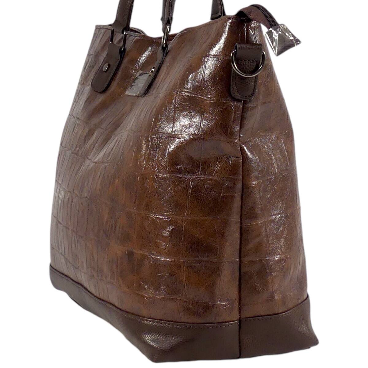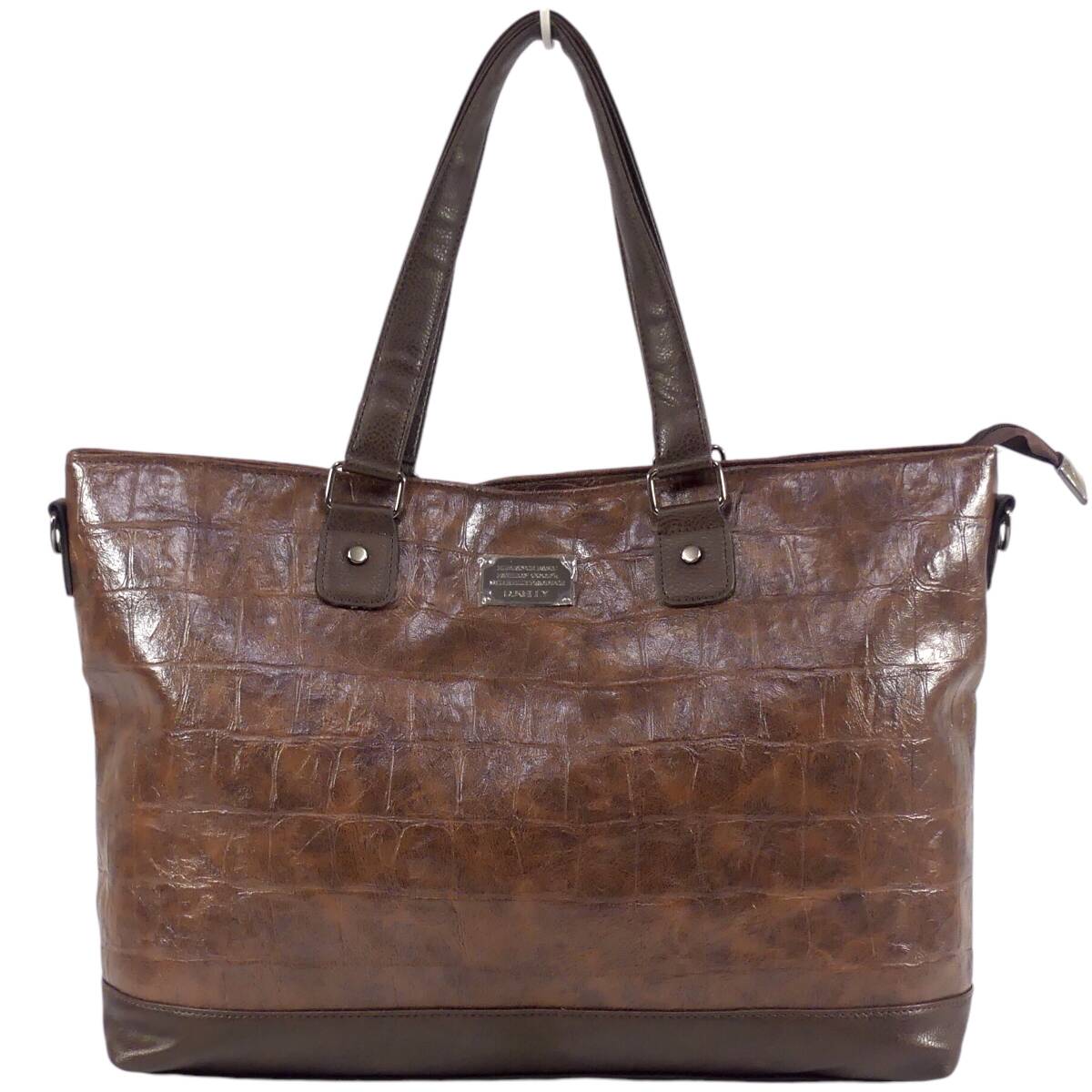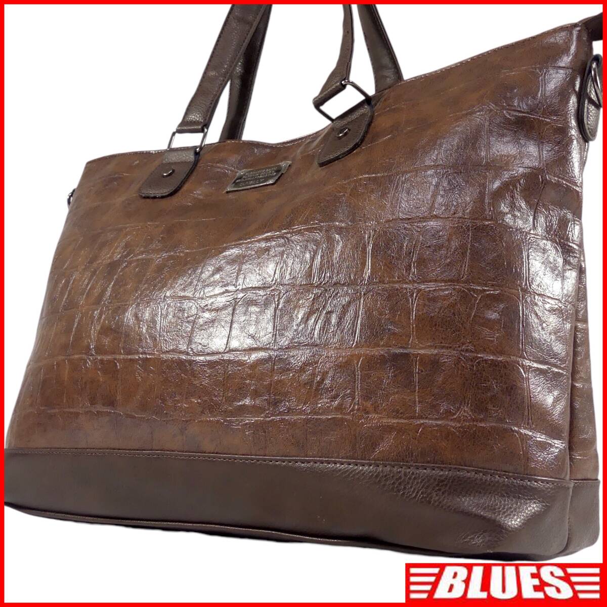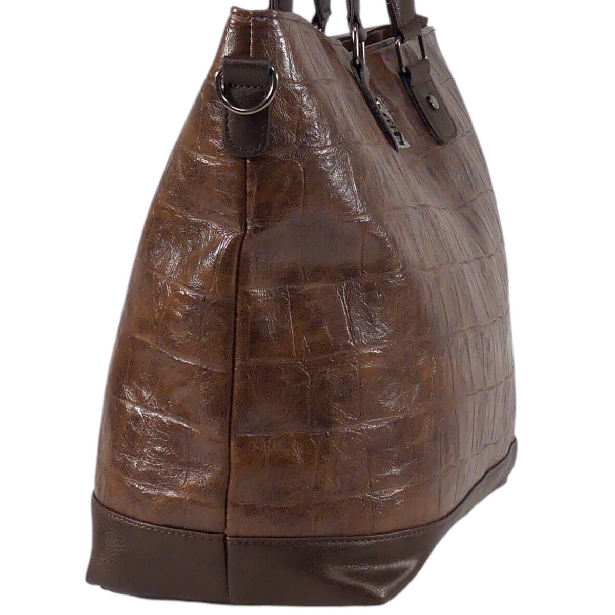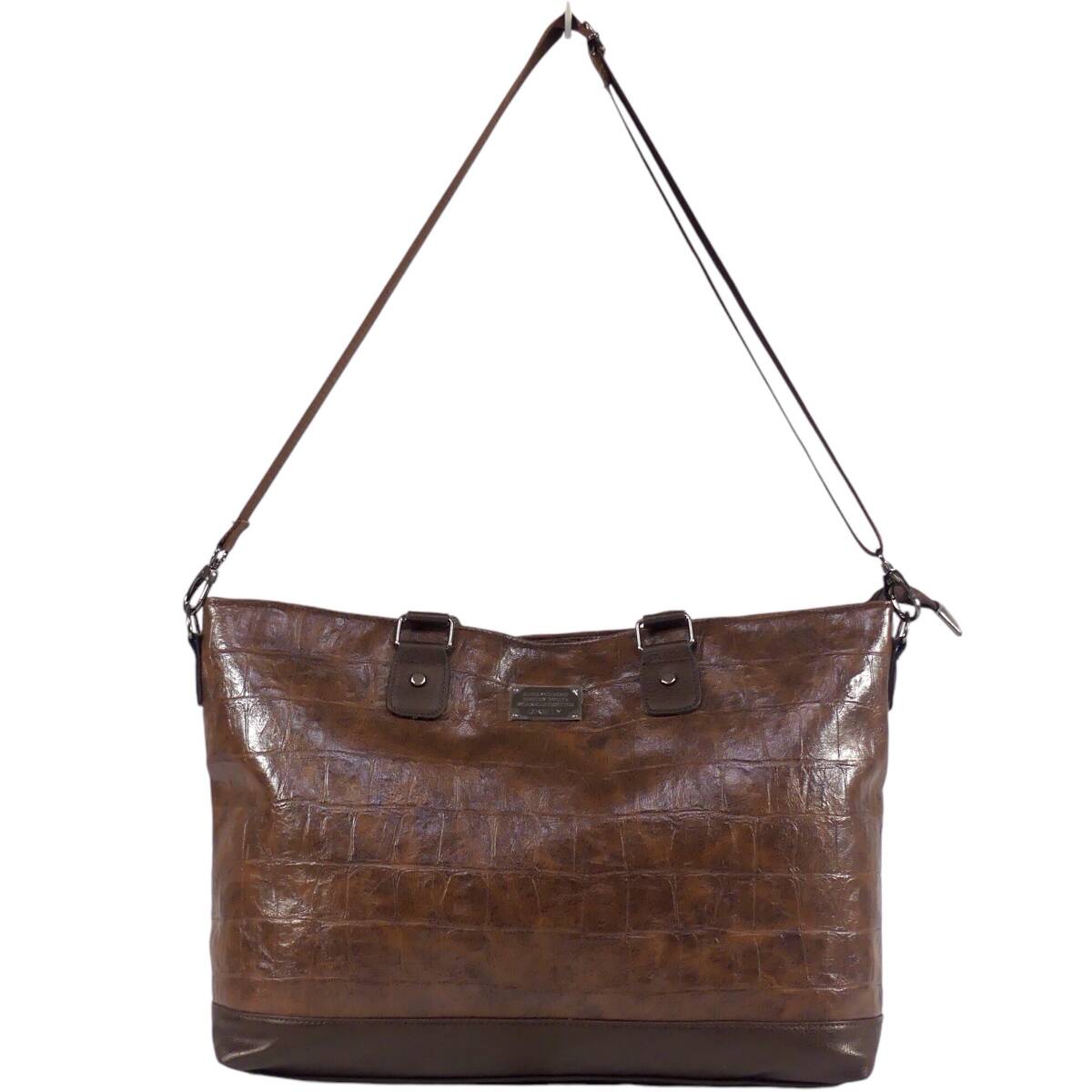 即決★D.KELLY★オールレザートートバッグ ディーケリー 2way 茶 クロコ型押し 本革 ハンドバッグ 本皮 ショルダー 旅行 カバン 出張 鞄