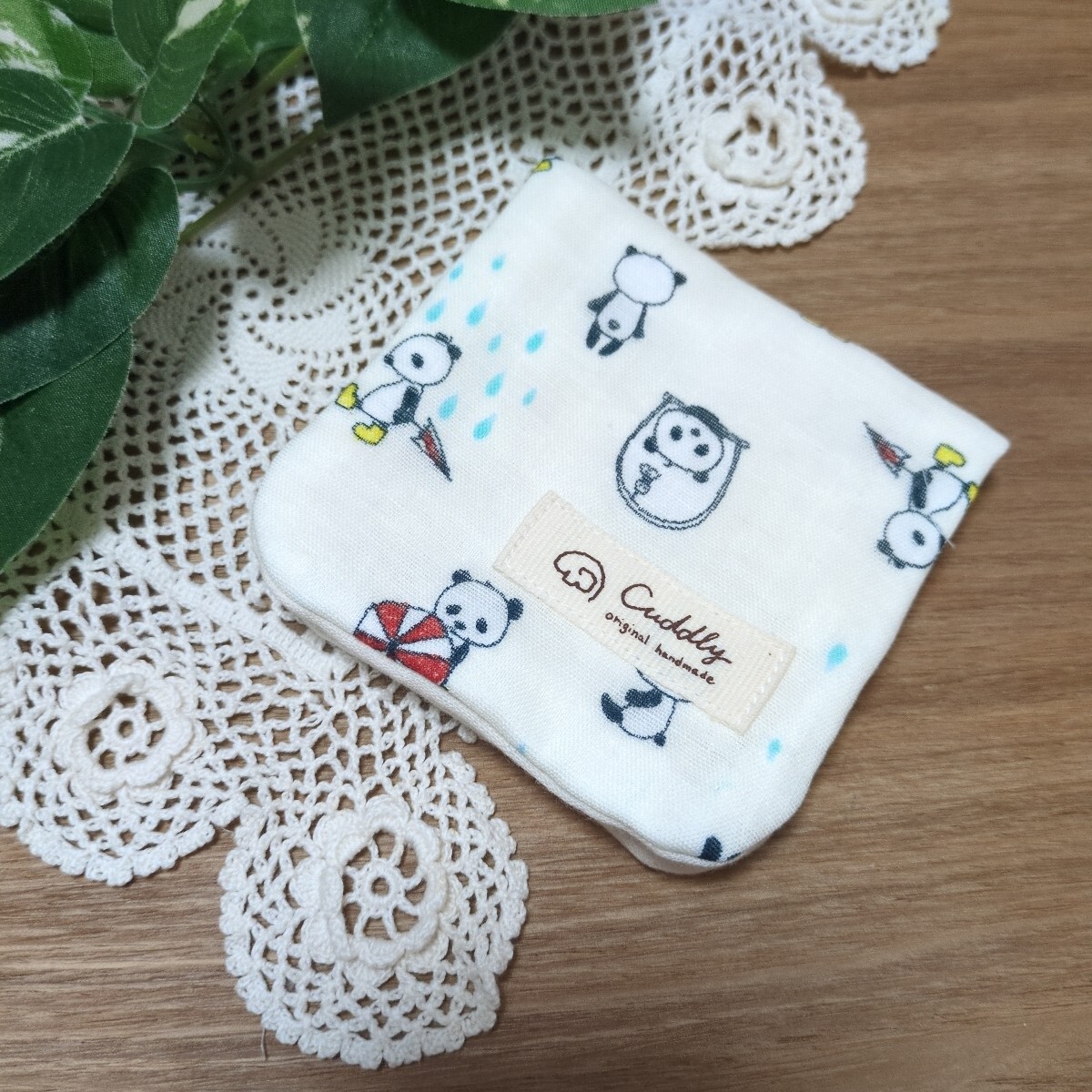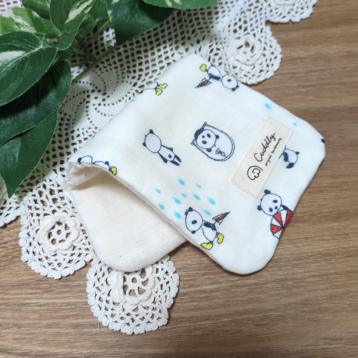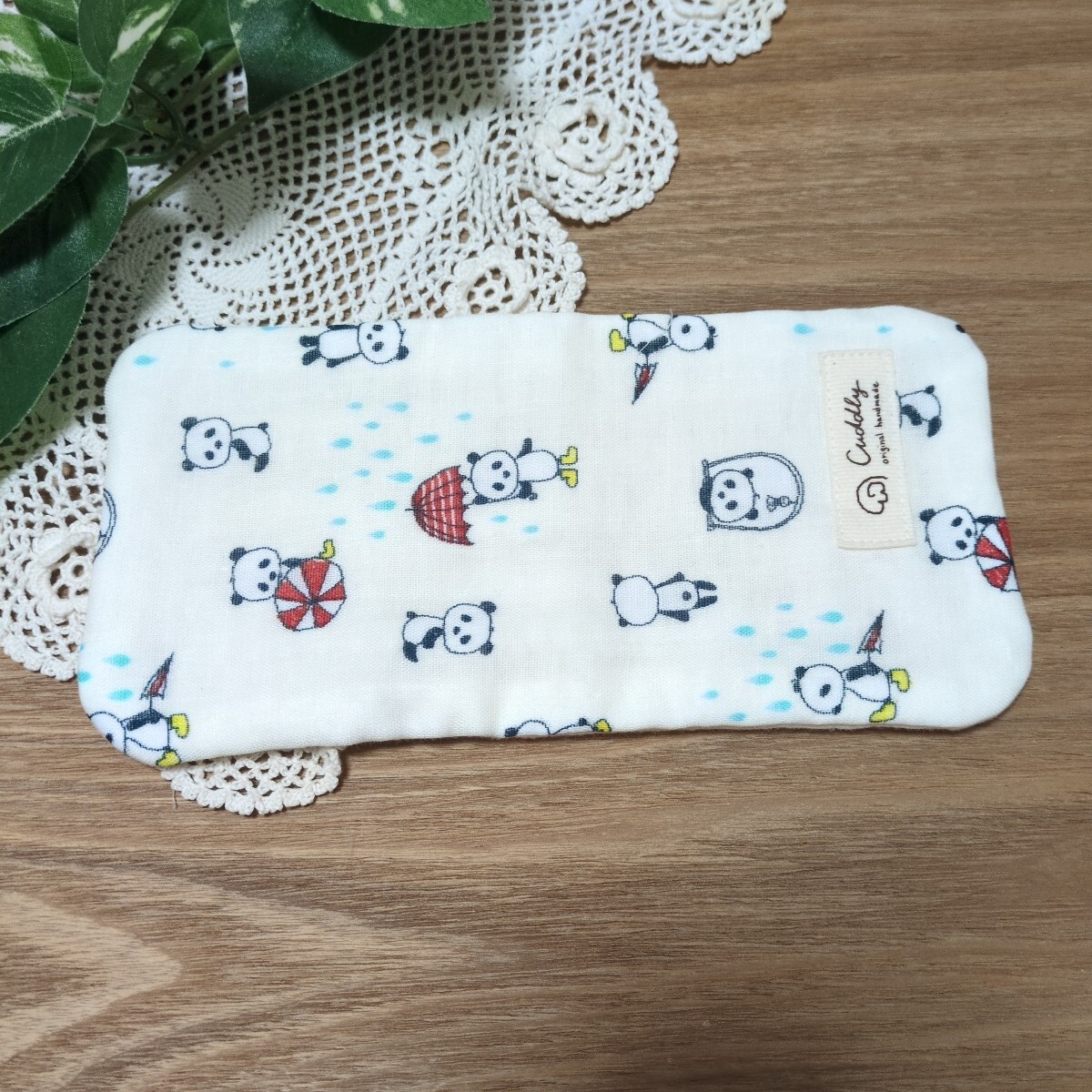 562 ハンドメイド ハンカチ ハーフサイズ パンダ かさ 長靴パンダ