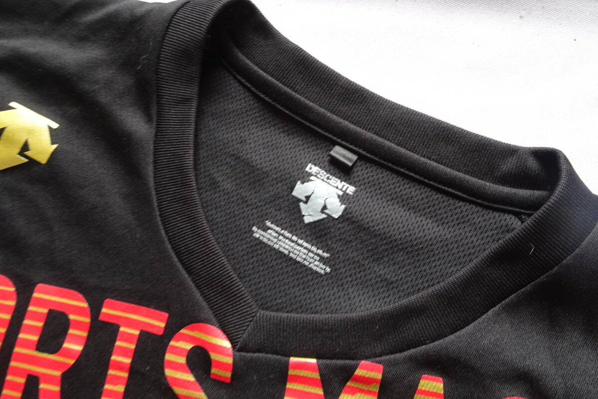 DESCENTE/デサント/DVB-5753L/長袖Tシャツ/ロンT/Vネック/速乾性素材/袖一部Tシャツ生地切替/文字プリント/黒/ブラック/SSサイズ(10/17R)
