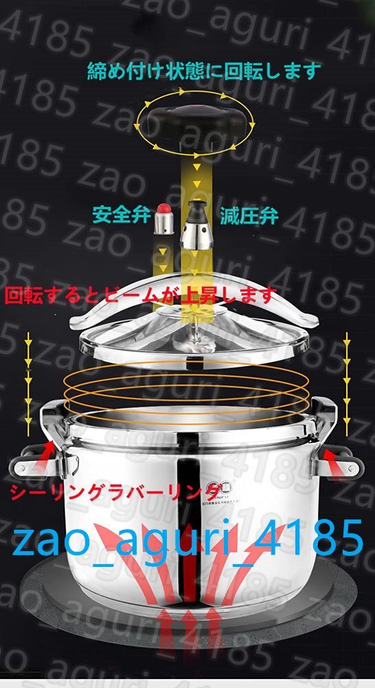 圧力鍋 304ステンレス鋼圧力鍋、圧力調理器、 迅速で簡単、厚くする 圧力鍋 切り替え式 ガス火IHオール熱源対応 (シルバー 40L)