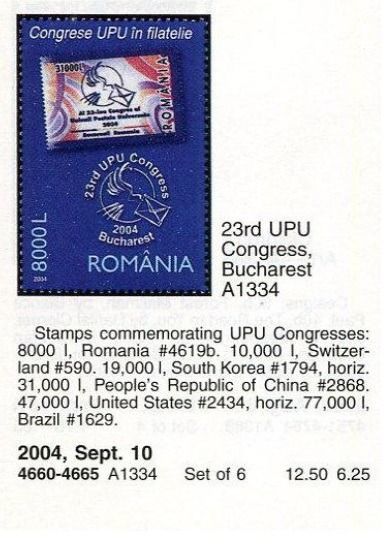 (ルーマニア)2004年UPU会議6種完、スコット評価12.5ドル(海外より発送、説明欄参照)
