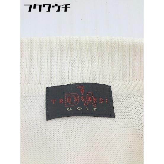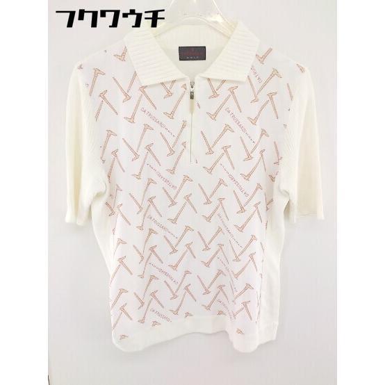 ◇ TRUSSARDI GOLF ゴルフ 総柄 コットン ニット 切替 ハーフジップ 半袖 ポロシャツ アイボリー系 レディース