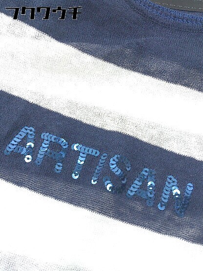 ◇ ARTISAN COMME CA DU MODE リネン混 半袖 ミニ ニット チュニック ワンピース サイズ9 ブルー系 ホワイト レディース