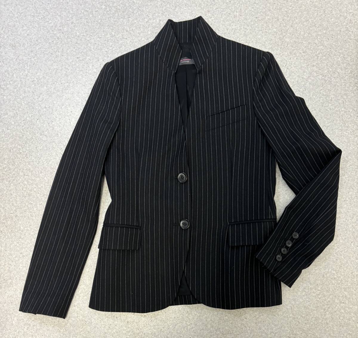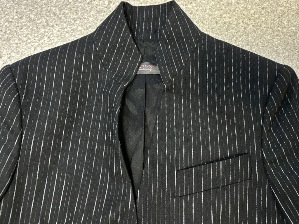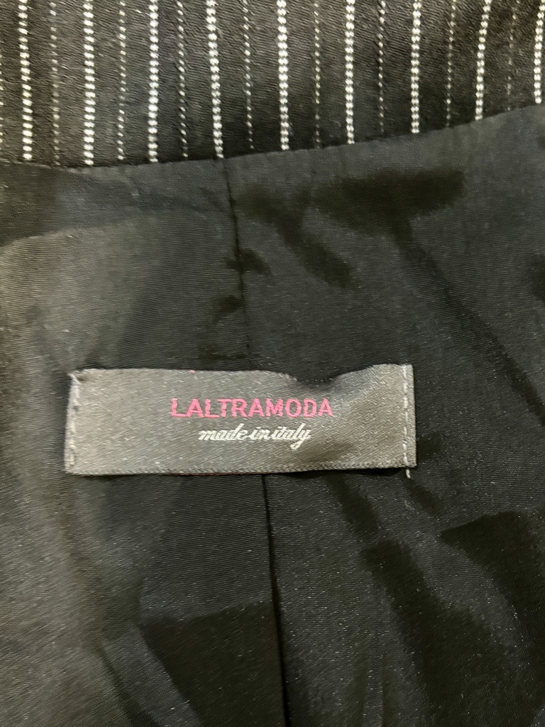 ★E518/未使用/黒ストライプ立襟ジャケット[40]LALTRAMODA ラルトラモーダ