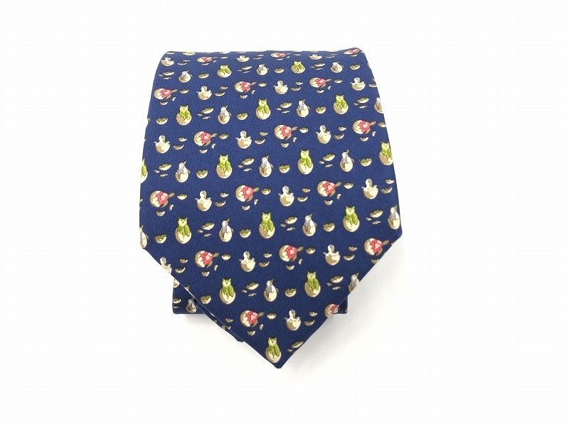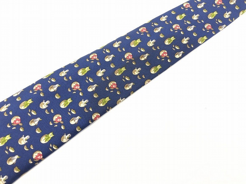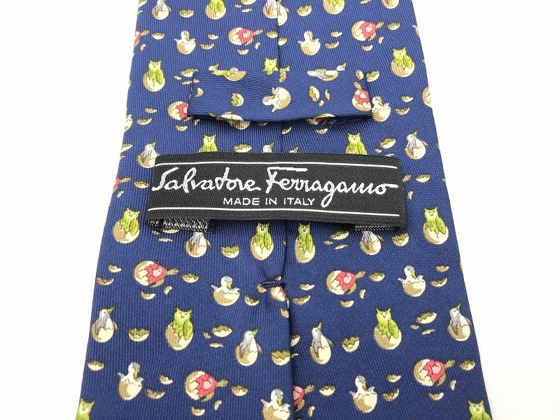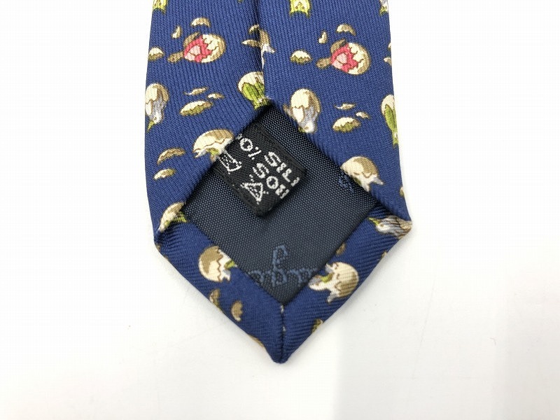フェラガモ feragamo シルクネクタイ ブルー 鳥・たまご