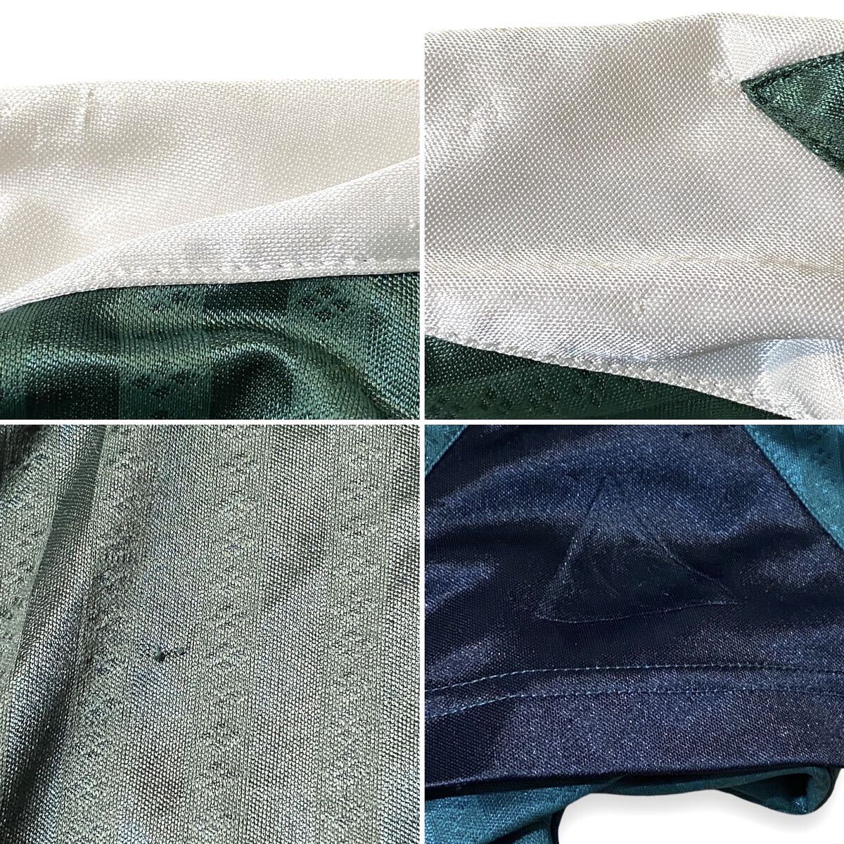 袖や肩等にやや糸引きがございます。左肩ロゴプリントが消えかかっております。5枚目をご参照下さい。チーム等に関する詳細は不明です。