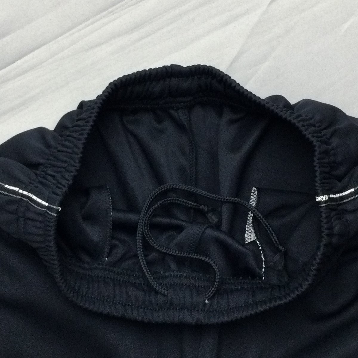左胸とパンツの左ポケット下にロゴ刺繍あり。