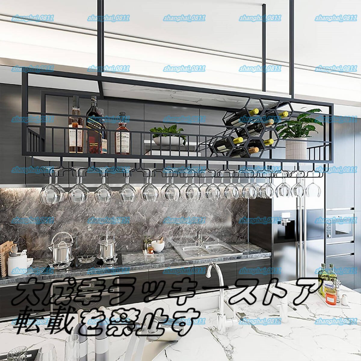 ワイン ハンガー、ワイングラスホルダー、天井吊りワインラック ガラスホルダー付き、ワイングラス 収納、90*30*40cm