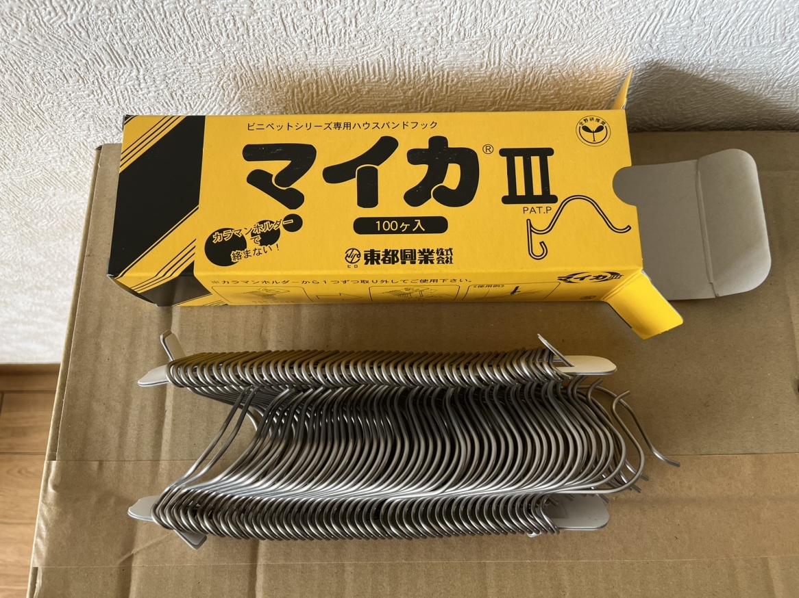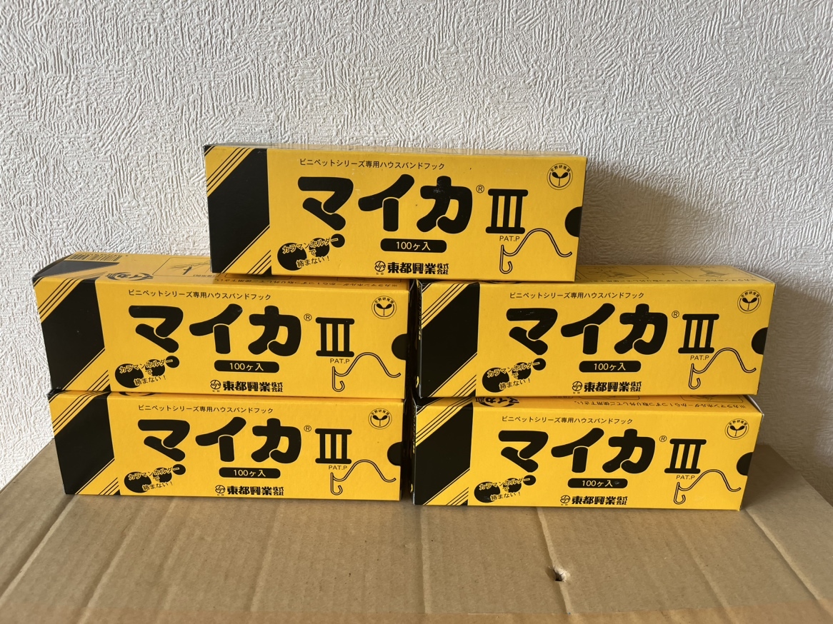 ●商品説明● | マイカ3 5箱(1箱100ヶ入×5)での販売となります。 ★鹿児島県日置市からの出品です ※こちらは現状お渡しとなります。説明文を最後までお読みいただき、ご理解の上で入札をご検討いただきますよう、よろしくお願い致します ◎ビニペットシリーズ専用ハウスバンドフック ◎フィルムにやさしい角丸タイプです ◎フック部分がフィルムに触れ合わないのでフィルムを傷つけません ◎線径:2.3mm ※確認内容に関して万全を心がけておりますが、当方の気付かない点 また、説明が不足していることがある可能性もございます。 【現状渡し】をご理解の上、ご検討をお願いします。 |