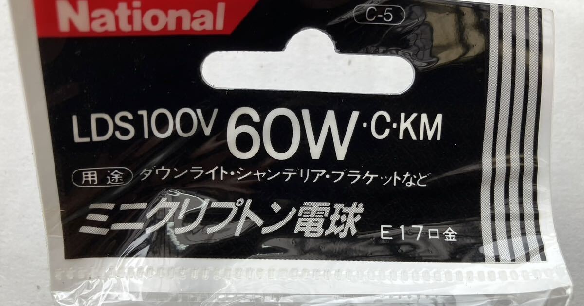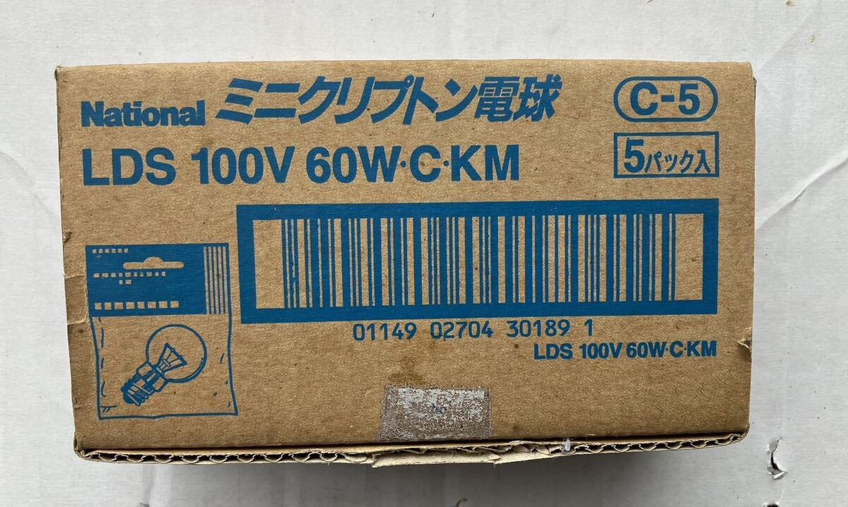 パナソニックの会社名がナショナルの頃に販売されたミニクリプトン電球です。