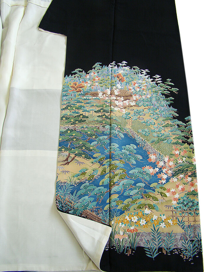 ★美品◆作家物!裄長め!日本庭園柄の趣深い黒留袖(正絹) C269★ | |