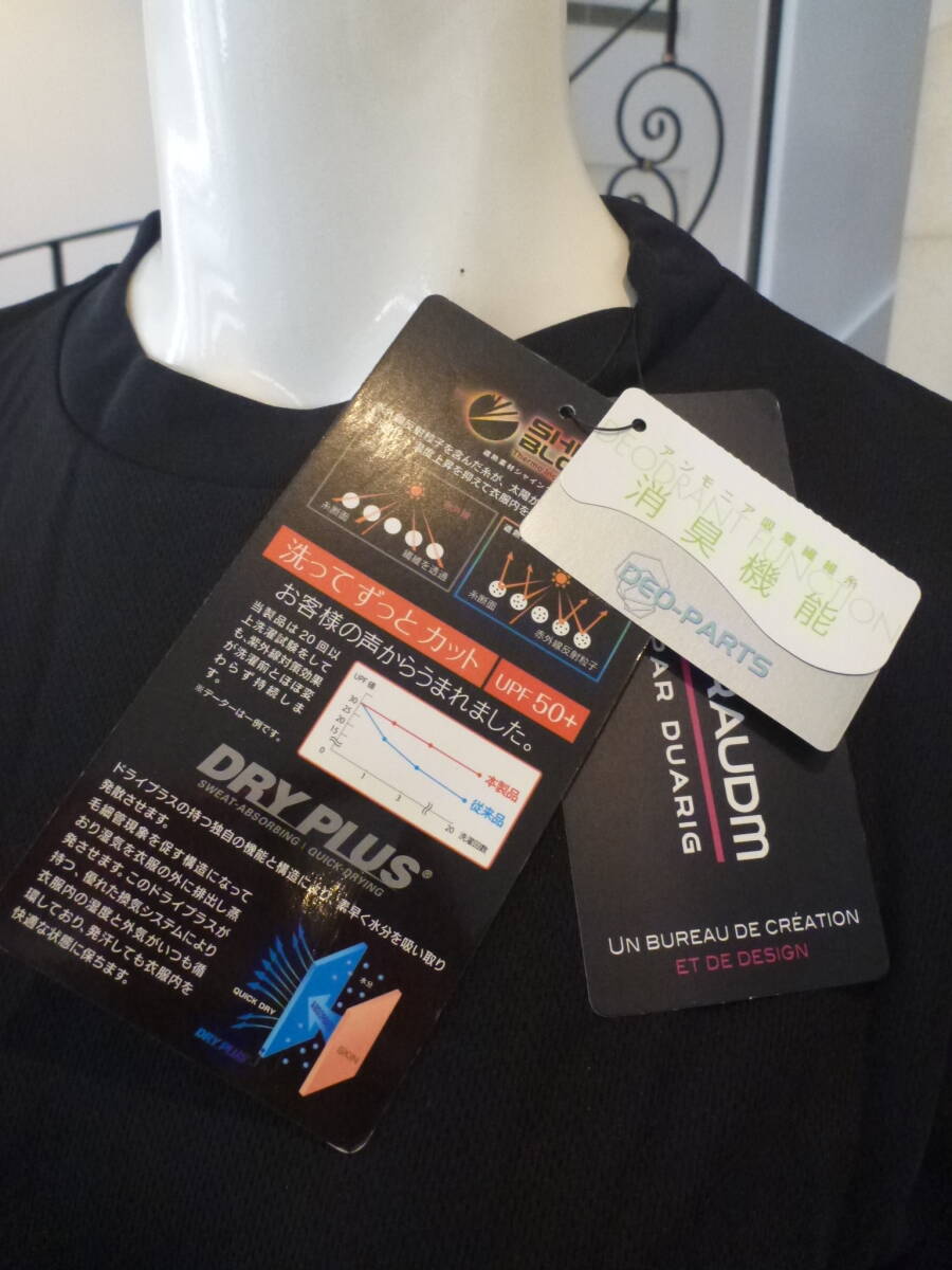 新品 GIRAUDM ジローム★メンズ 黒 ブラック UPF50+ 吸汗速乾素材 遮熱素材シャインブロック 半袖Tシャツ M