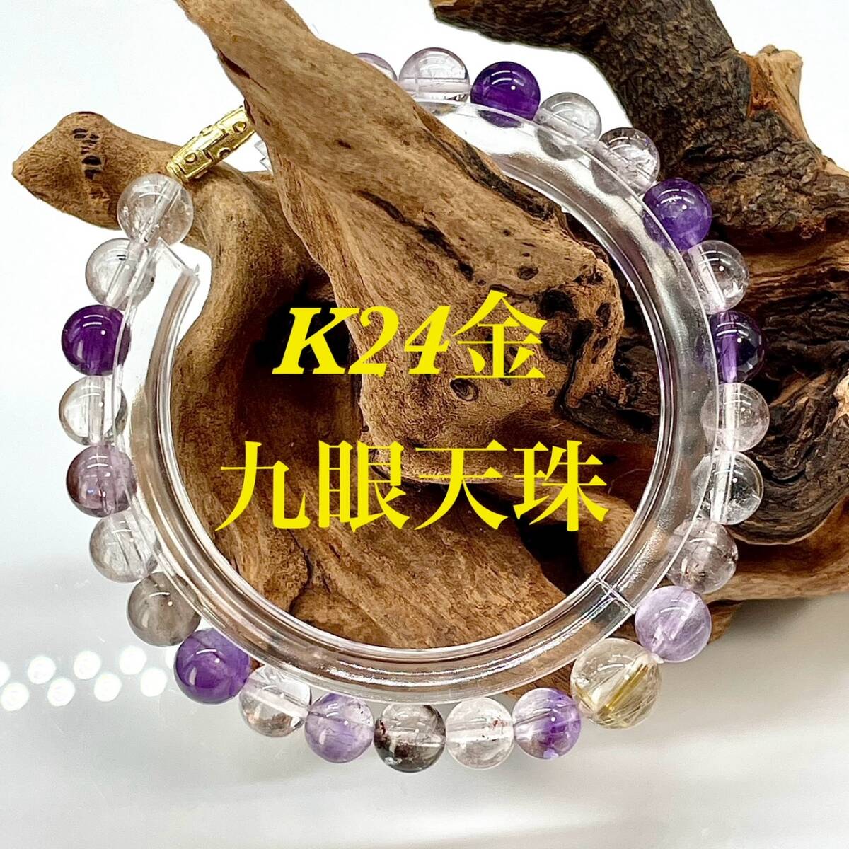 K24金で覆われたミニサイズの九眼天珠をセットした究極の天然石ブレスです。