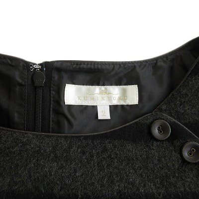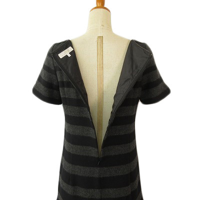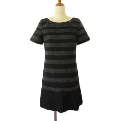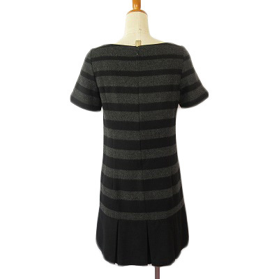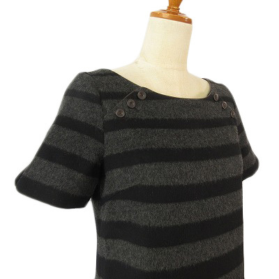 クミキョク 組曲 KUMIKYOKU ワンピース ボーダー 半袖 ウール 2 黒 ブラック グレー レディース